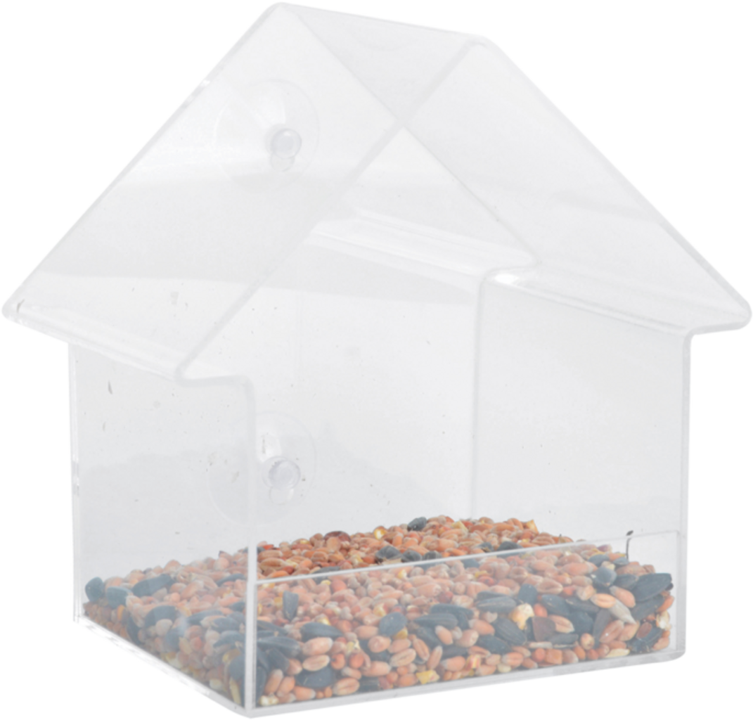 Met dit moderne voederhuisje kun je de vogels van binnenuit zien eten. Dankzij de transparante wanden en het doorzichtige dak kun je alles zien wat er binnen gebeurt. Bevestig het met de zuignappen aan het raam of hang het aan de muur.