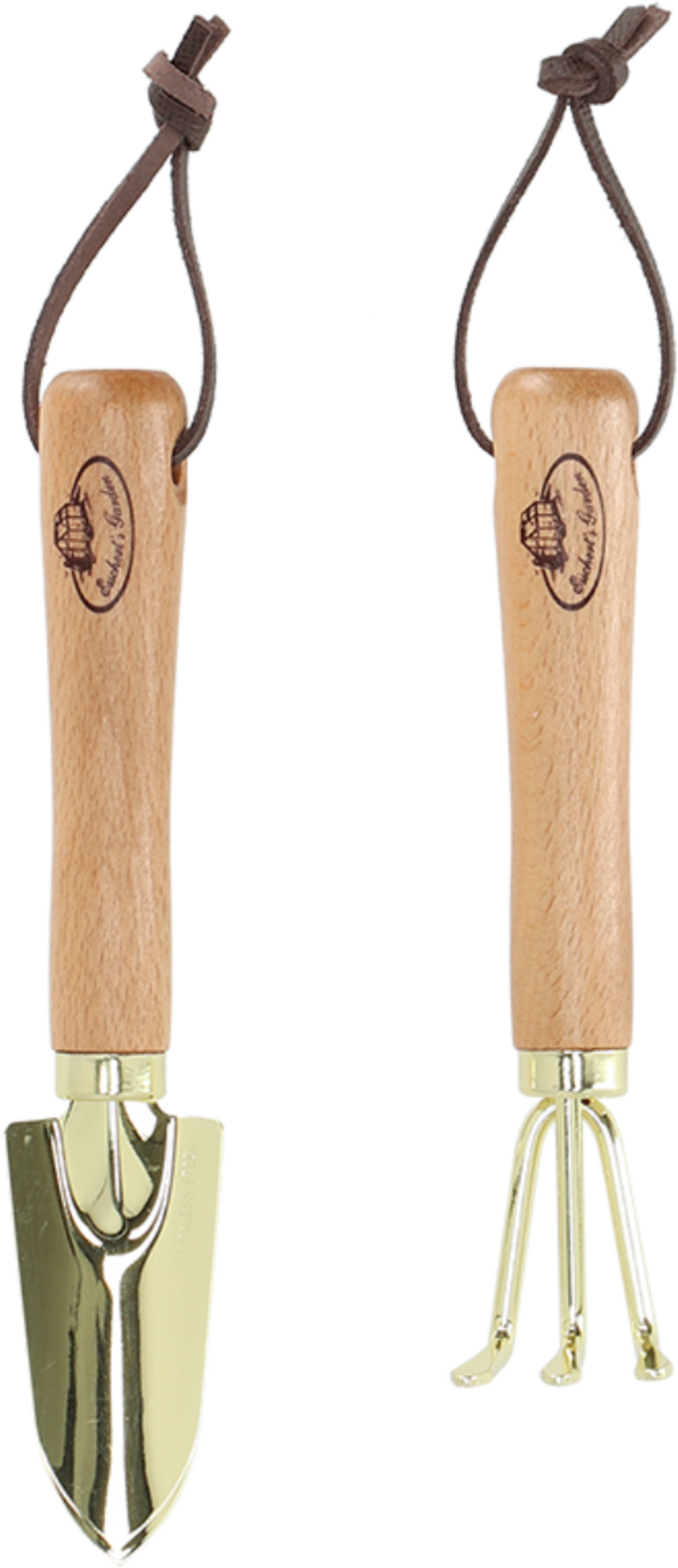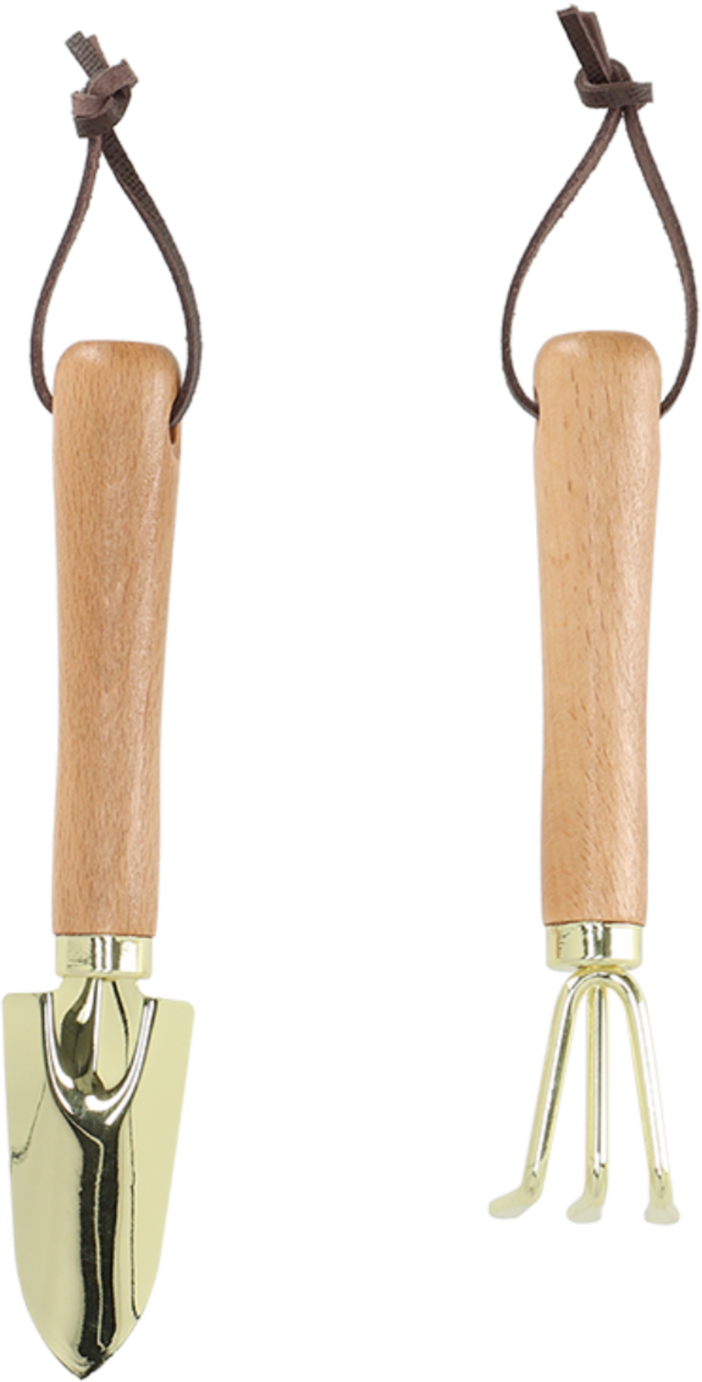 Deze twee vergulde minigereedschappen zijn ideaal voor kleinere tuin- en plantklussen. Of het nu gaat om het verpotten of het werken aan het kruidenbed: deze set laat je niet in de steek en zorgt ervoor dat je in stijl kunt tuinieren. Ook een prachtig cadeau voor iedereen met groene vingers.