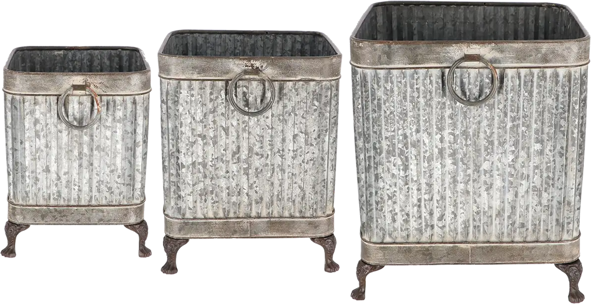 Esschert Design Vierkante Plantenbakken met Voeten - Set van 3