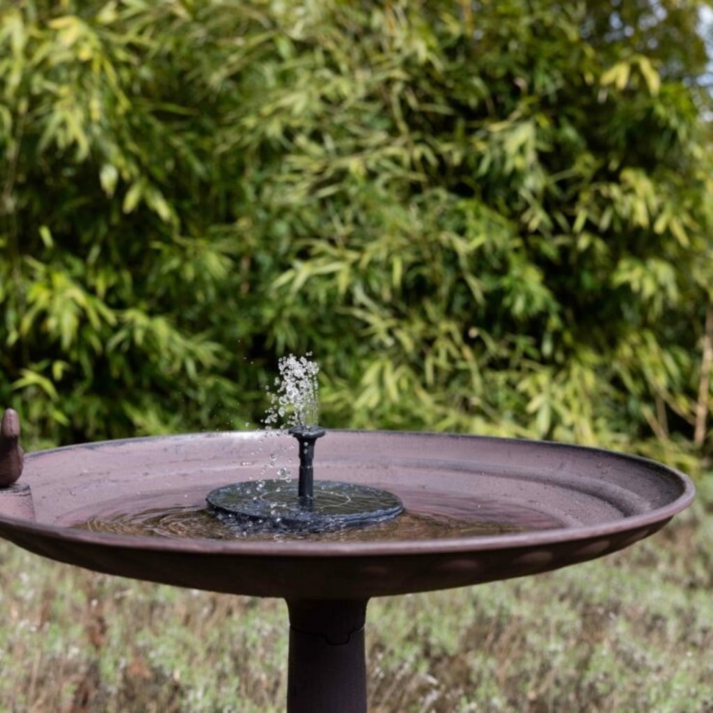 Met de fontein op zonne-energie geef je je vogelbad of tuinvijver net dat beetje extra! Dankzij de pomp op zonne-energie werkt het fonteintje helemaal zonder stroomaansluiting. Plaats hem gewoon in het water, geniet van het zonlicht het zachte gespetter.