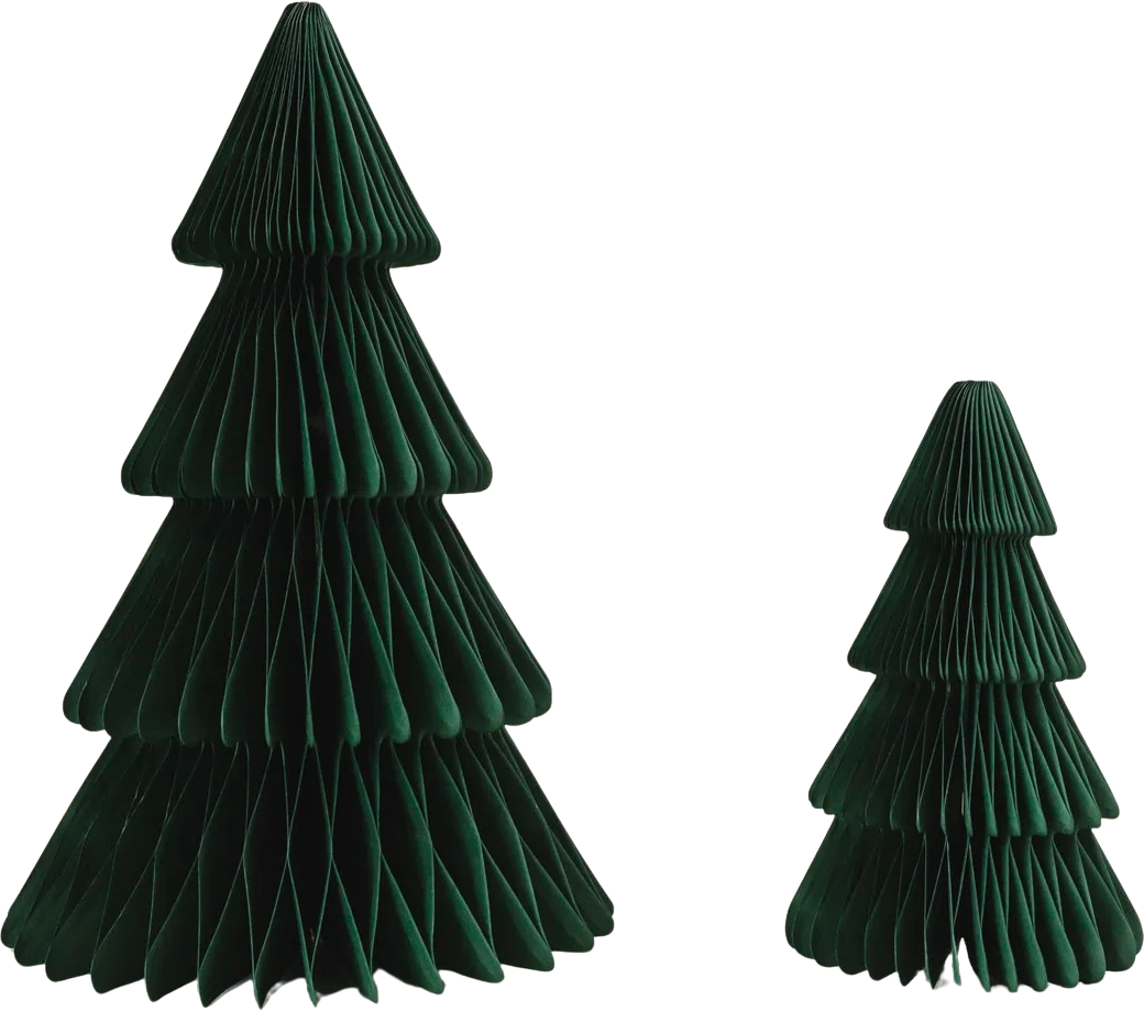 De papieren dennenbomen in een set van 2 geven een elegant, natuurlijk tintje aan kerstdecoraties. Ze zijn gemaakt van hoogwaardig papier met een fijne honingraatlook en voegen stijlvolle accenten toe aan dressoirs, adventsdecoraties of feestelijke tafelschikkingen.