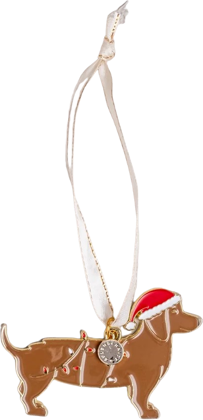 De vrolijke kerstboomdecoratie brengt meteen een feestelijke sfeer in de kerstboom. De schattige bruine teckel draagt een leuke kerstmuts en is een echte blikvanger die charme toevoegt aan elke boom.