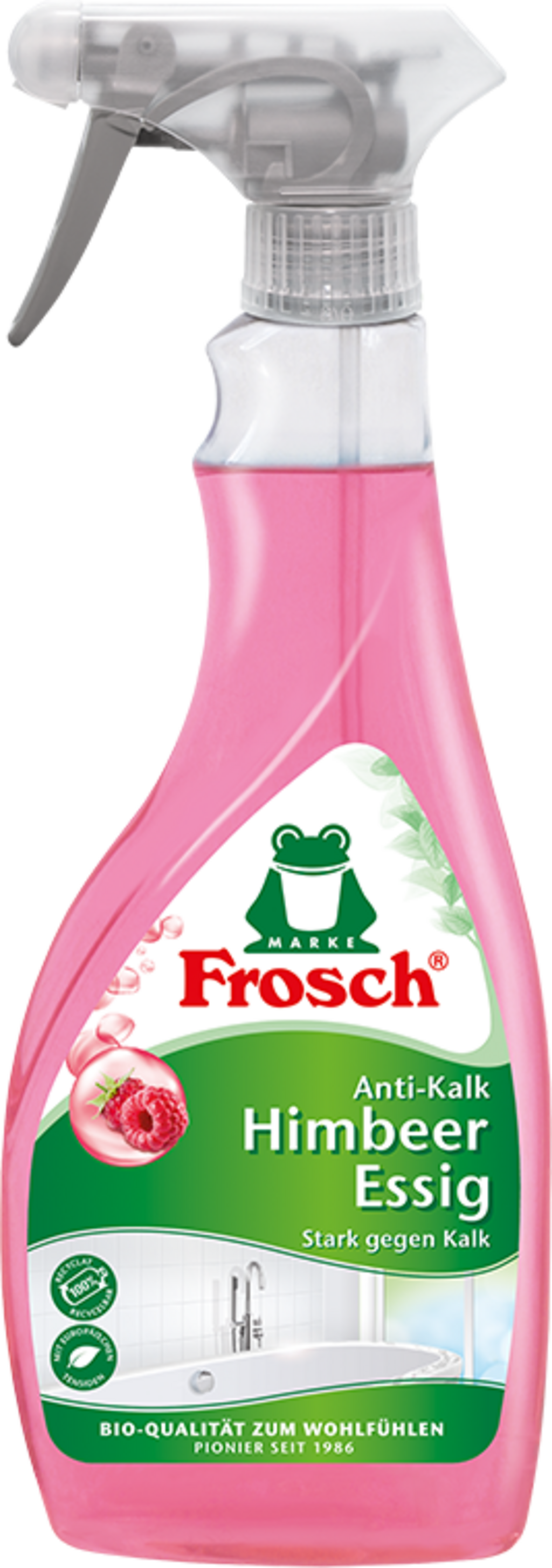 De Anti-Kalk Frambozenazijn van Frosch laat vuil en kalk verdwijnen zodat de keuken en badkamer weer stralen! Het veganistische recept met frambozenazijn verwijdert hardnekkige kalkaanslag van douches, wastafels, kranen, badkuipen en tegels - en laat een delicate frambozengeur achter. Dankzij de korte inwerktijd is het schoonmaken in een mum van tijd gedaan en kun je genieten van de frisse properheid!