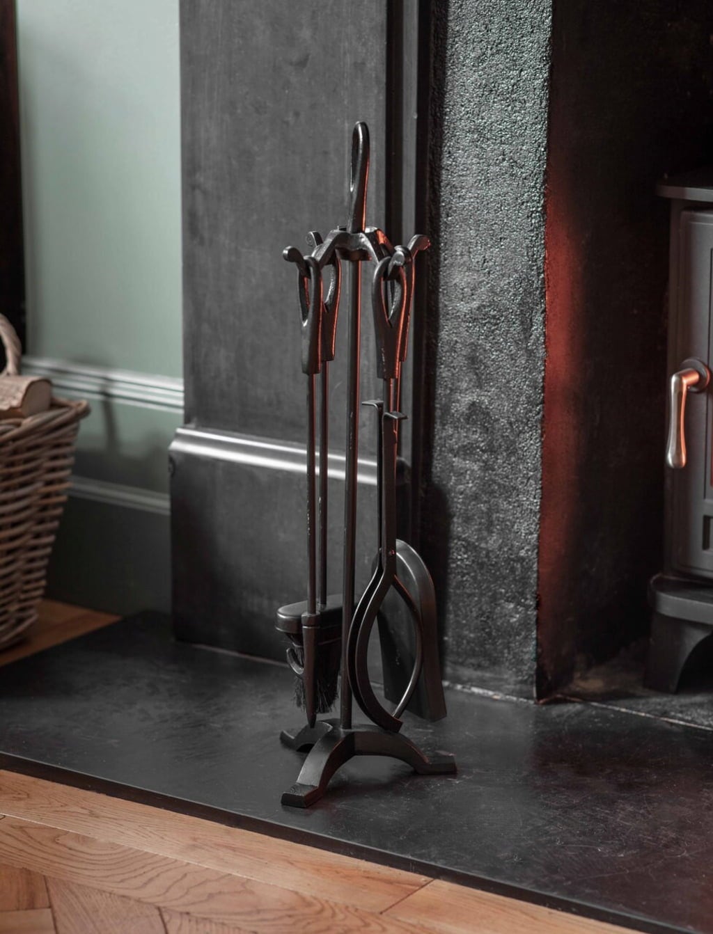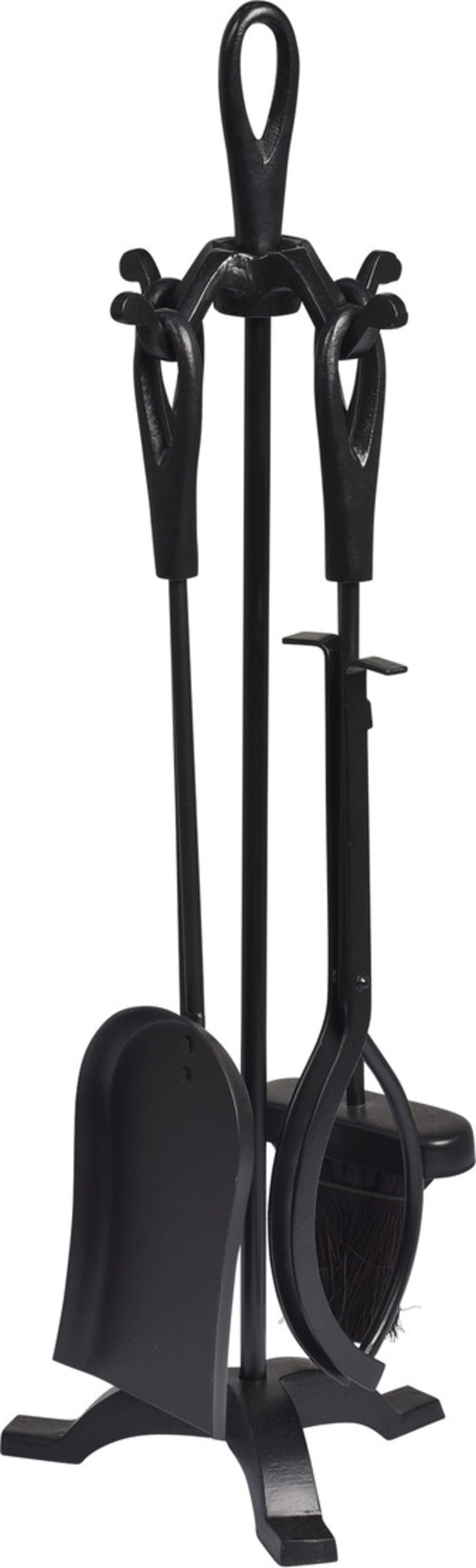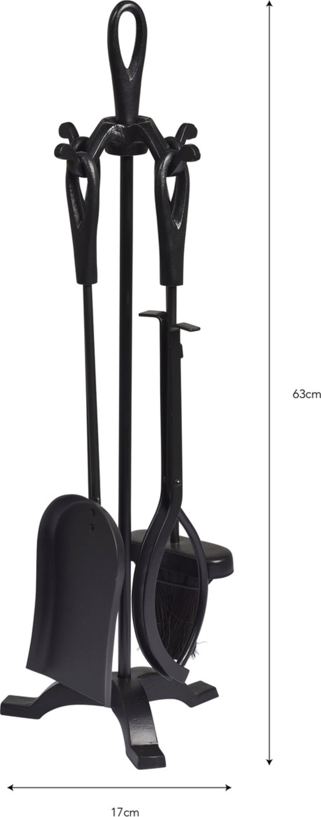 Deze klassieke haardset voor open haarden, gemaakt van duurzaam gietijzer, bevat alle essentiële gereedschappen voor het onderhouden van een open vuur of houtkachel: pook, tang, bezem en schep. Het biedt niet alleen praktische ondersteuning, maar geeft je woonkamer ook een gezellig landhuiskarakter, ideaal voor het koude seizoen.