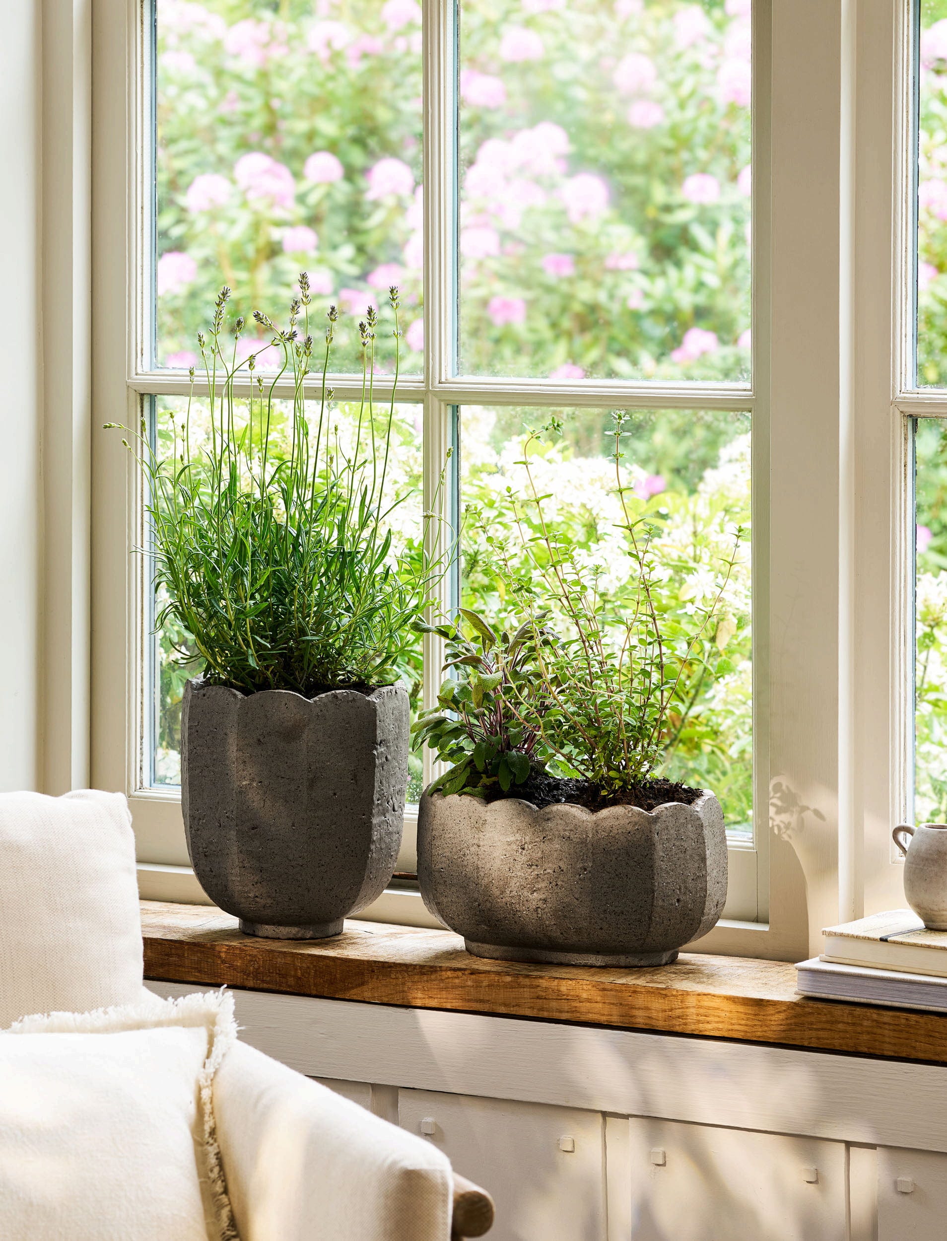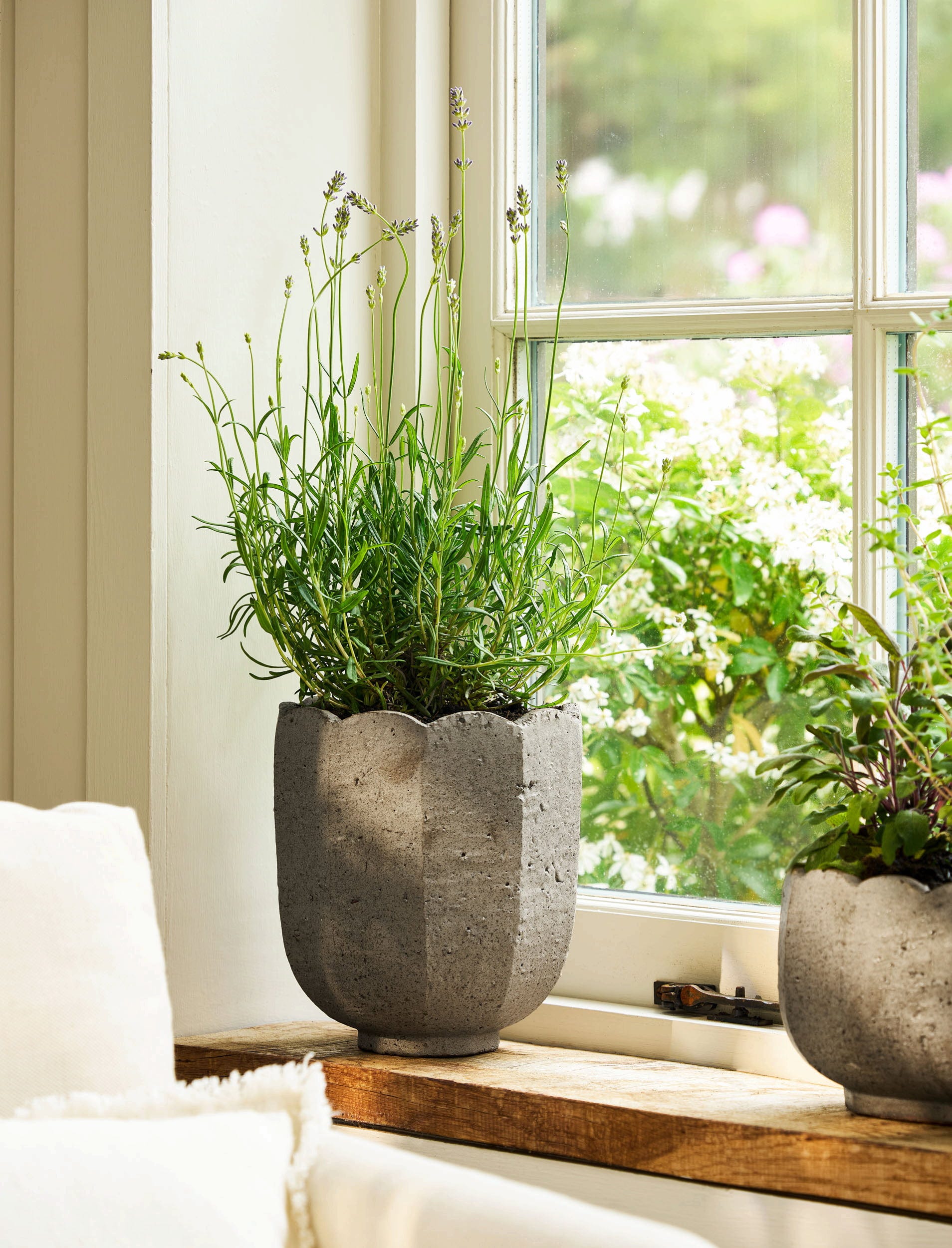 Met zijn moderne cementlook past deze plantenbak perfect in verschillende interieurstijlen, van landelijk tot industrieel. Hij is geïnspireerd op de ronde vorm van een zeeschelp, straalt een aangename warmte uit en laat je kamerplanten goed tot hun recht komen.