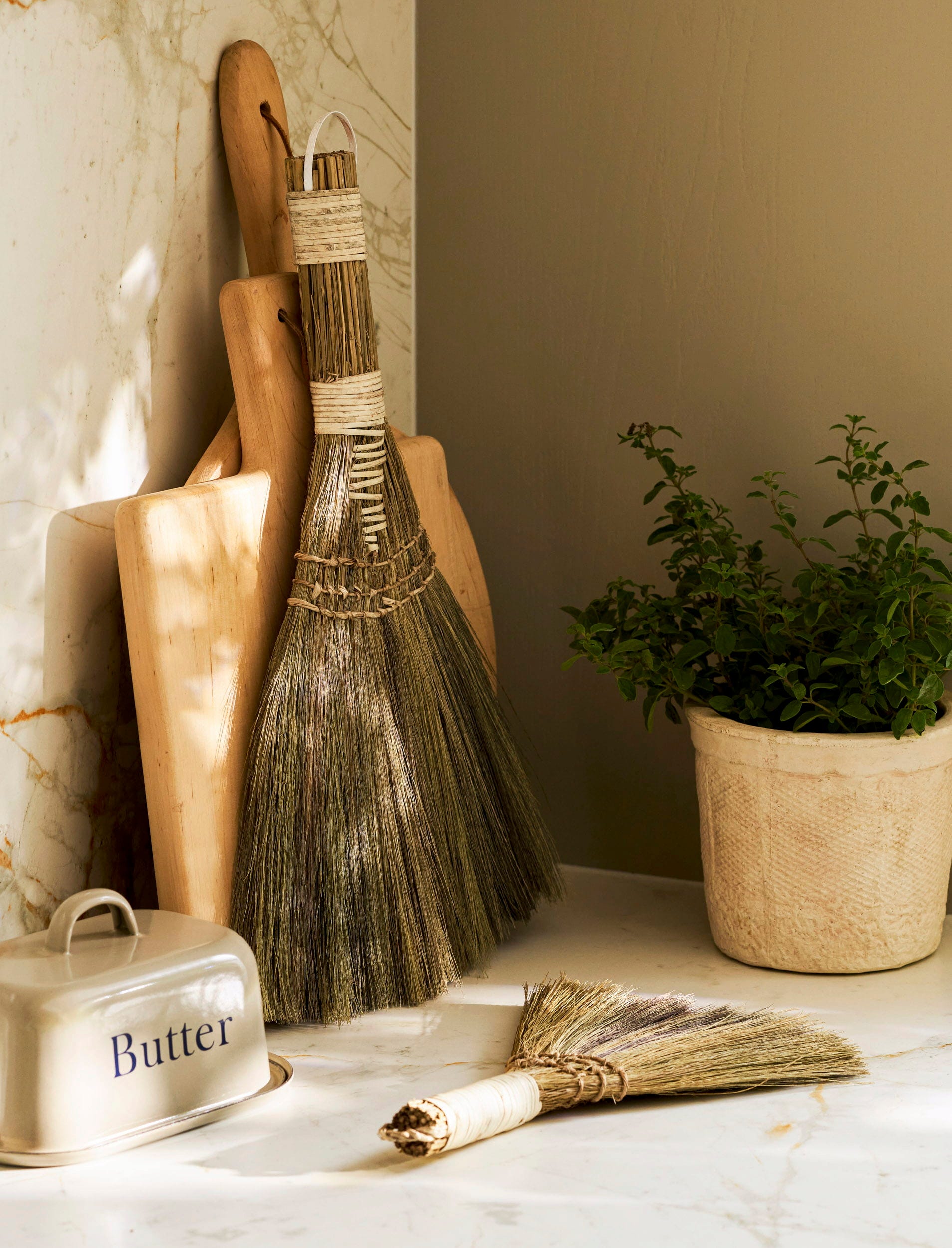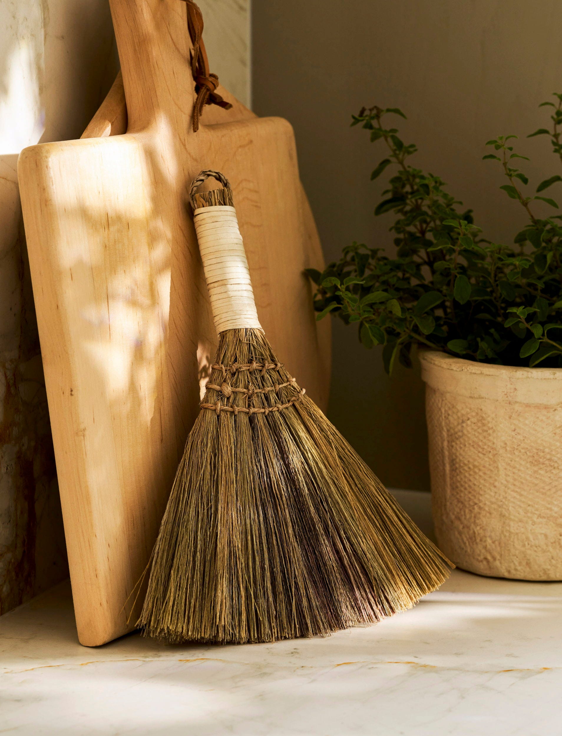 Deze tafelborstel is een stijlvolle manier om kruimels van tafelbladen en het aanrecht te vegen. Hij is gemaakt van natuurlijk zeegras en voorzien van een omwikkeld handvat met een handige ophanglus. Zo kan hij, wanneer je hem niet gebruikt, ruimtebesparend en decoratief aan een haakje in de keuken of bijkeuken worden opgehangen.