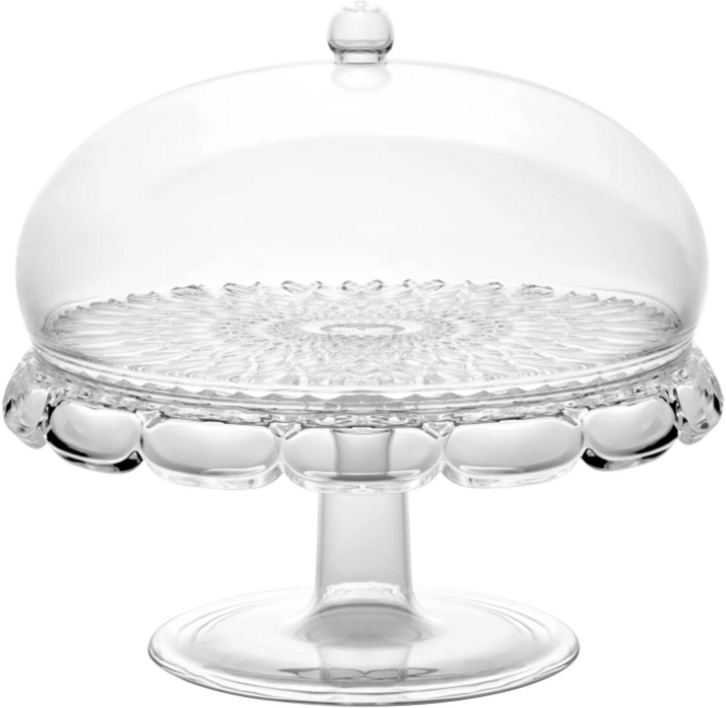 Het „Vanity“-taartplateau met voet en stolp verenigt elegant design met praktische functionaliteit. Of het nu voor taart, kleine lekkernijen of fingerfood is – de inhoud blijft dankzij de transparante stolp vers en wordt tegelijkertijd stijlvol gepresenteerd. Ideaal voor bijzondere gelegenheden of voor dagelijks genot, duurzaam geproduceerd en een echte blikvanger op elke tafel.