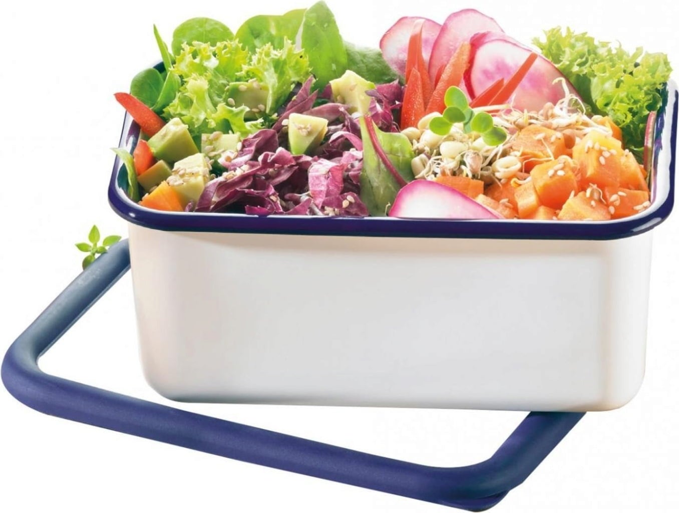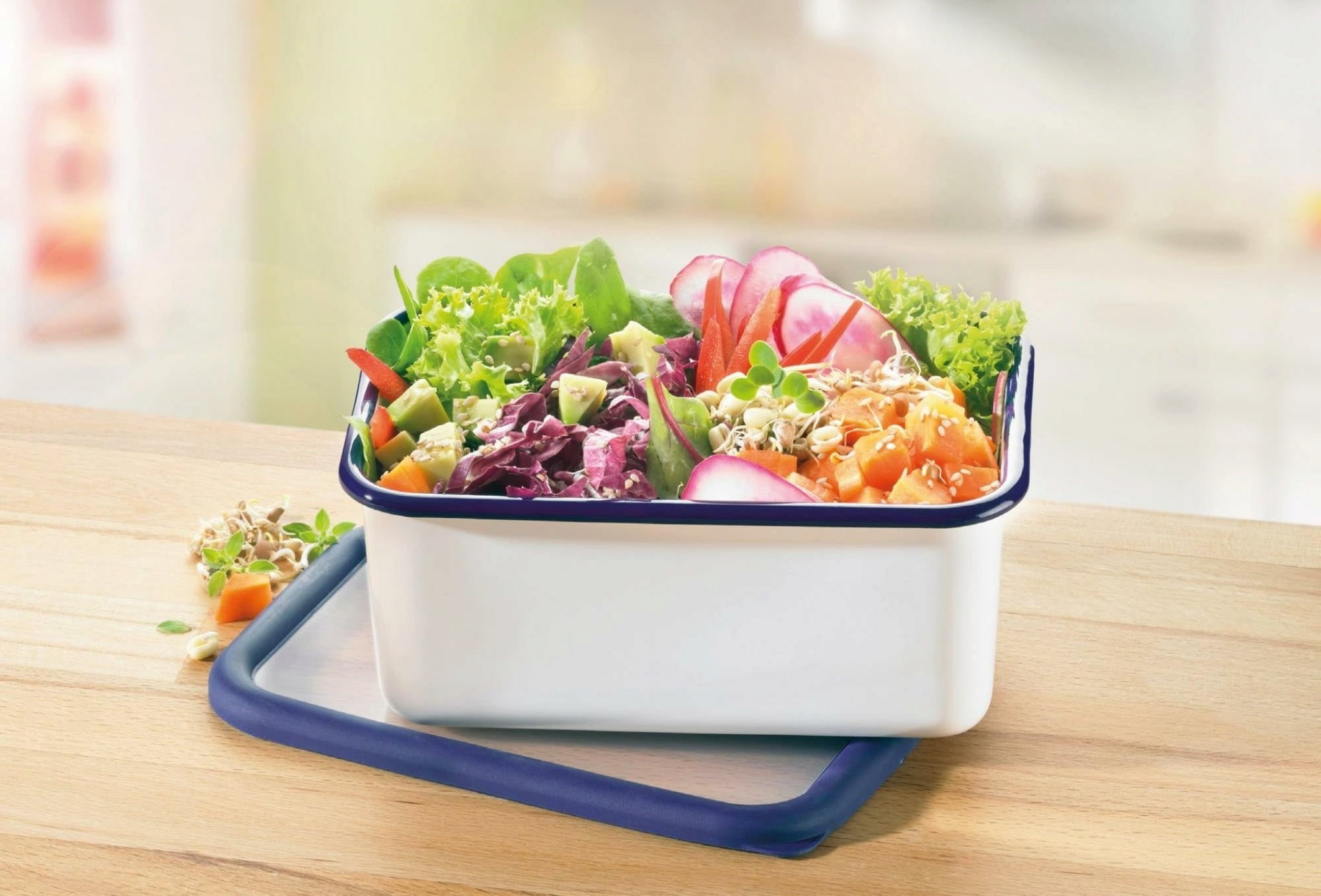 Deze snij- en krasbestendige emaille voorraaddozen zijn fantastische allrounders die op meerdere manieren van pas komen: Ze zijn niet alleen geschikt om in te bewaren, ze kunnen ook hun multifunctionaliteit bewijzen als ovenschaal om mee te braden en lasagne en co. te maken. Ze voelen zich ook prima thuis in het vriesvak, en de proviand wordt betrouwbaar beschermd dankzij de nauwsluitende deksel.