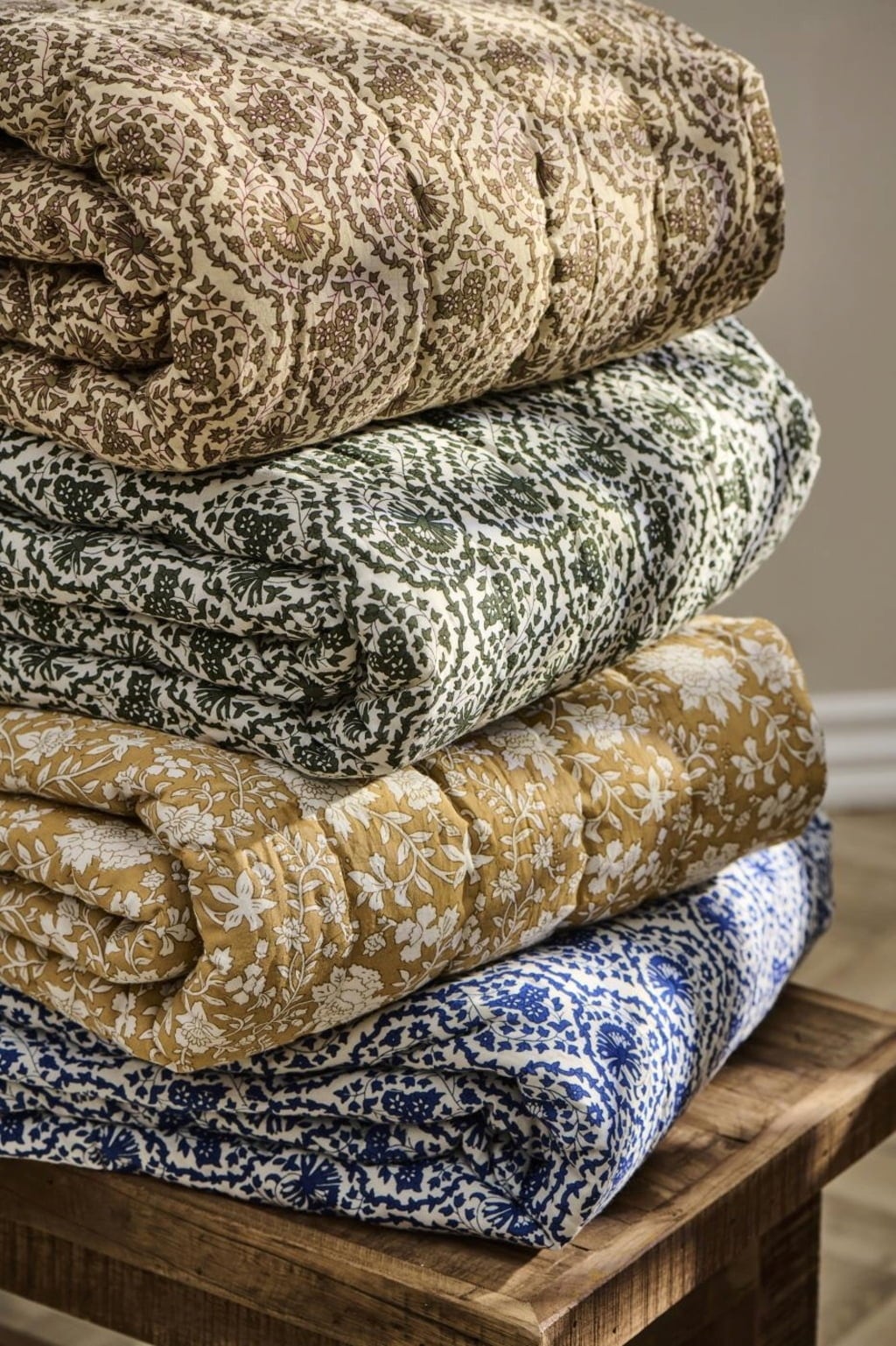 Met deze gewatteerde katoenen deken in warm mosterdgeel met witte bloemmotieven haal je de zomer direct in huis. Knuffelzacht en decoratief tegelijk. Bovendien is de deken zeer onderhoudsvriendelijk. Hij kan in de wasmachine op 30 °C.