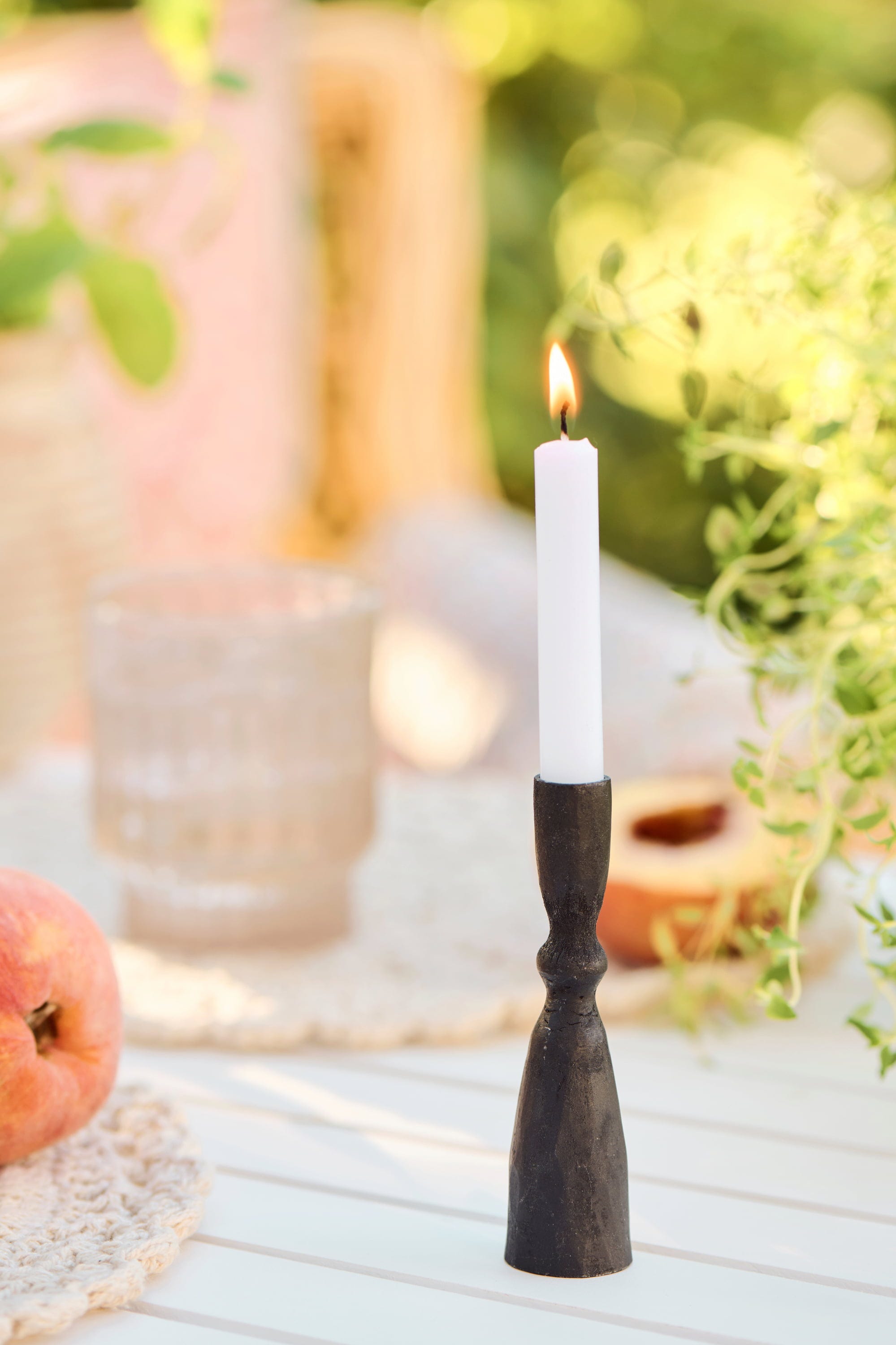 Een lange en elegante dinerkaars die perfect past bij de vele kandelaars van Ib Laursen.