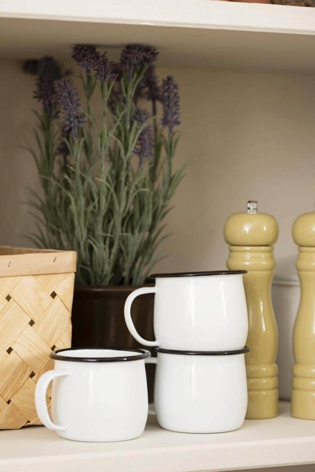 Of het nu thuis of onderweg is, of het nu om thee of koffie gaat, in deze mok smaakt het twee keer zo lekker! De productie van hoogwaardig emaille geeft hem niet alleen zijn coole retro-look, maar maakt hem ook tot een robuuste en duurzame huisgenoot.