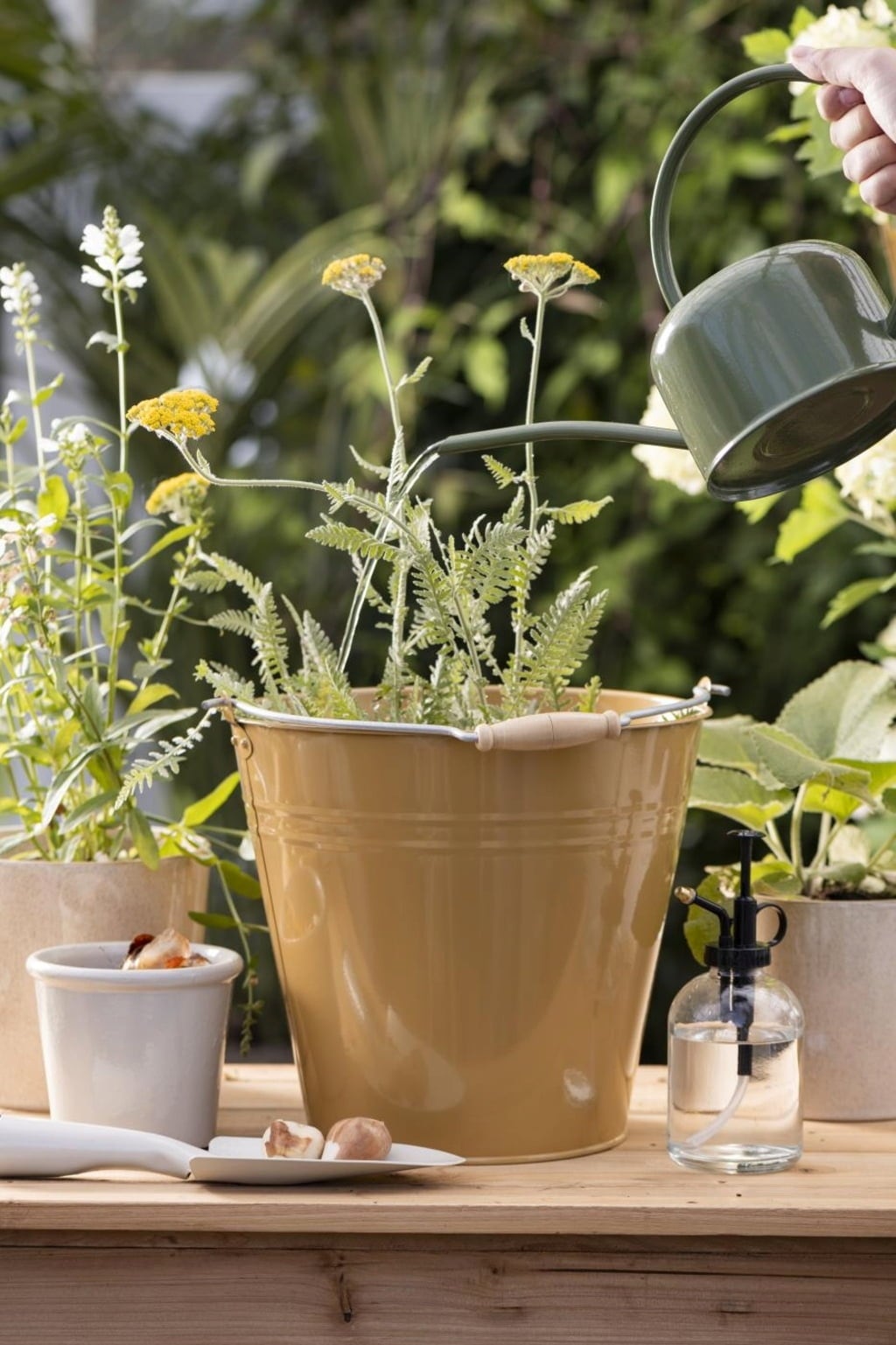 Zo stijlvol kan praktisch zijn! Deze emmer in trendy kleuren is niet alleen een nuttige hulp in huis en tuin, maar ook een decoratieve plantenbak en een blikvanger op elke plank. Of het nu om je lievelingsbloem of aromatische keukenkruiden gaat, als decoratie of als klein hulpje: deze emmer mag nooit ontbreken.