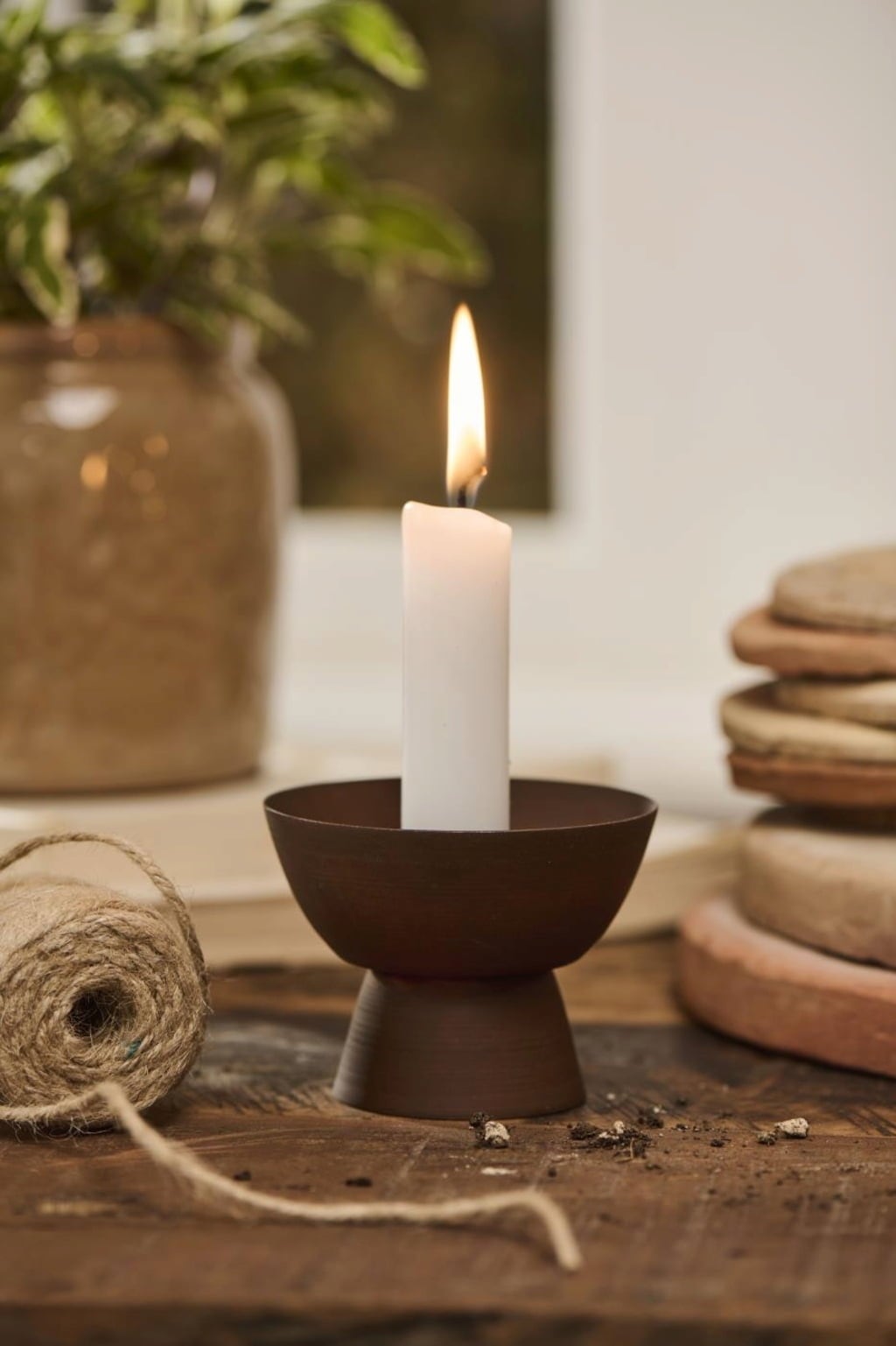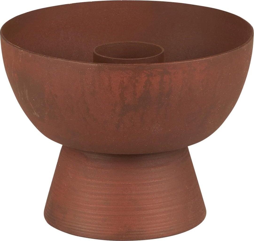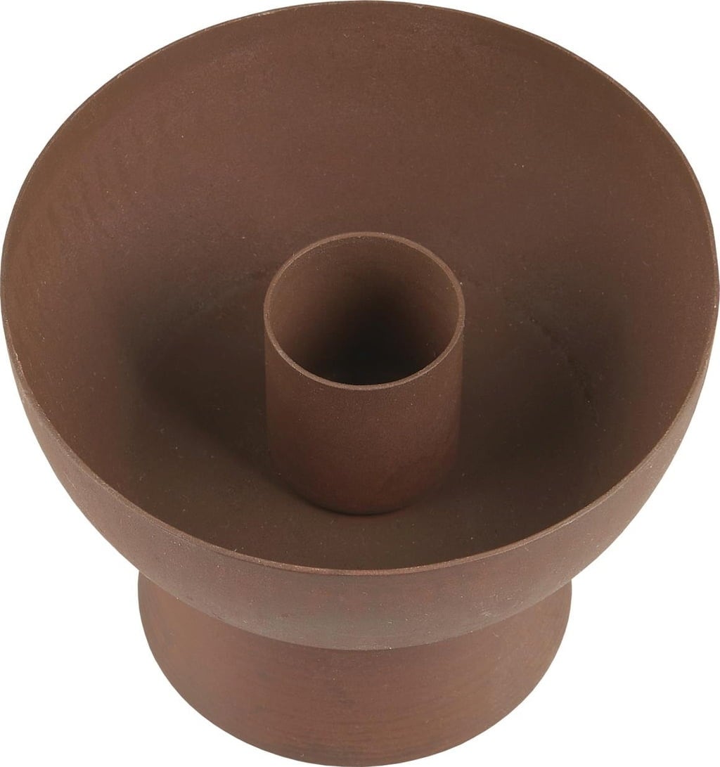 Tijdloze kaarsenhouder van metaal met patina-look. De conische voet geeft een bijzondere uitstraling en zorgt tegelijkertijd voor een veilige stand.