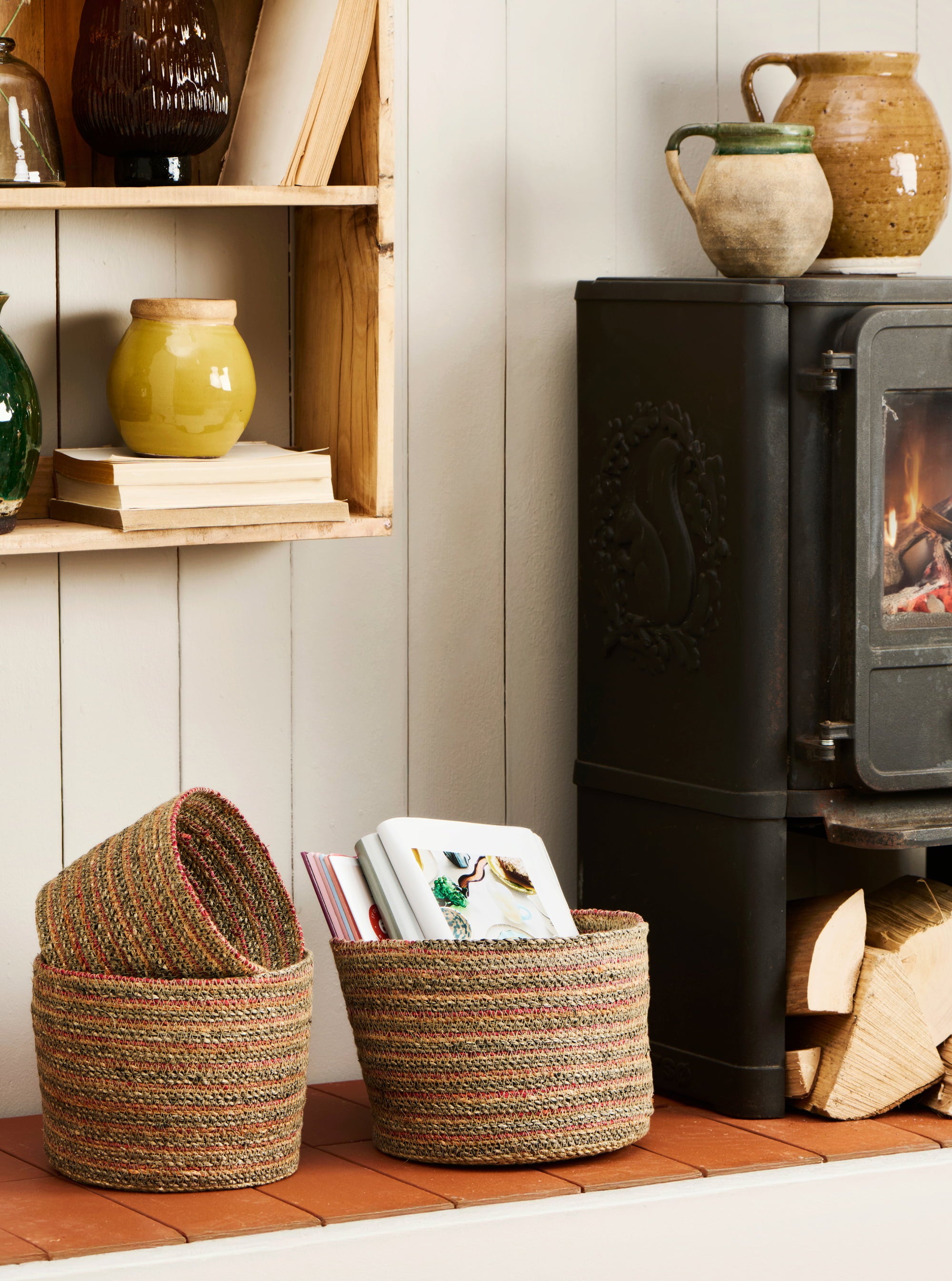 Of het nu in de badkamer, woonkamer of gang is, deze praktische manden van natuurlijk zeegras houden de boel stijlvol op orde en voegen een subtiel vleugje kleur toe.