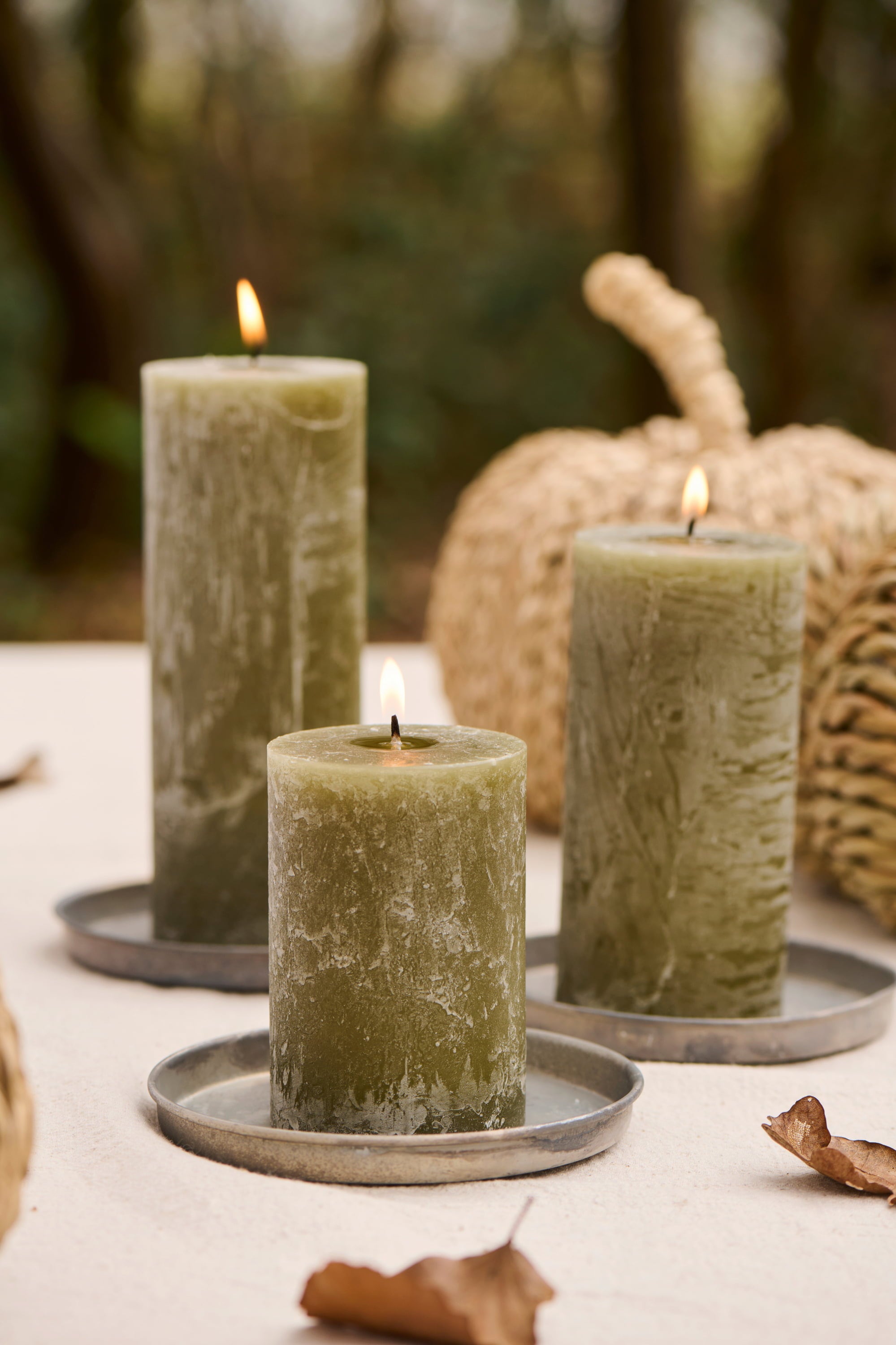 IB Laursen Rustieke Kaars - Hoogte 14 cm, Olijfgroen