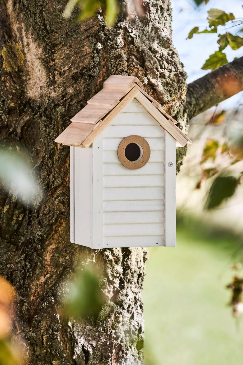 Met zijn stijlvolle cottage look is dit vogelhuisje een bijzondere blikvanger in je tuin en biedt het kleinere vogels een veilige nestplaats.