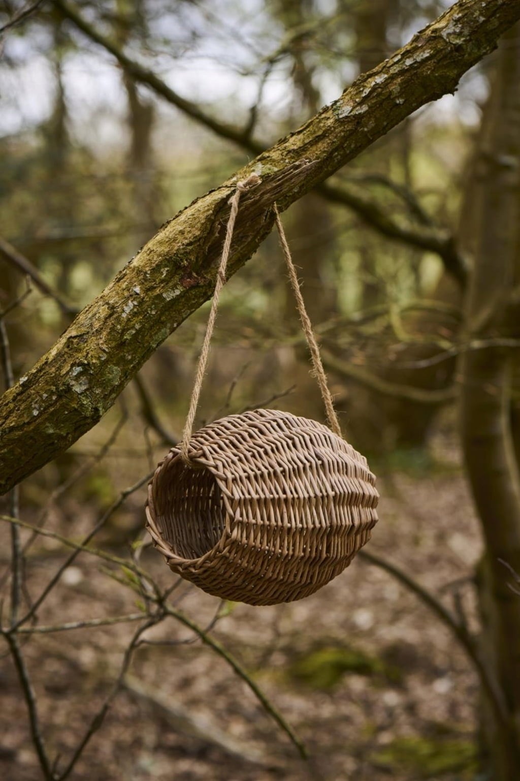 Vogelvoederhuisje met natuurlijke uitstraling van wilgenhout met jutekoord. Biedt diverse wilde vogels een welkome voederplaats in de koude wintermaanden.