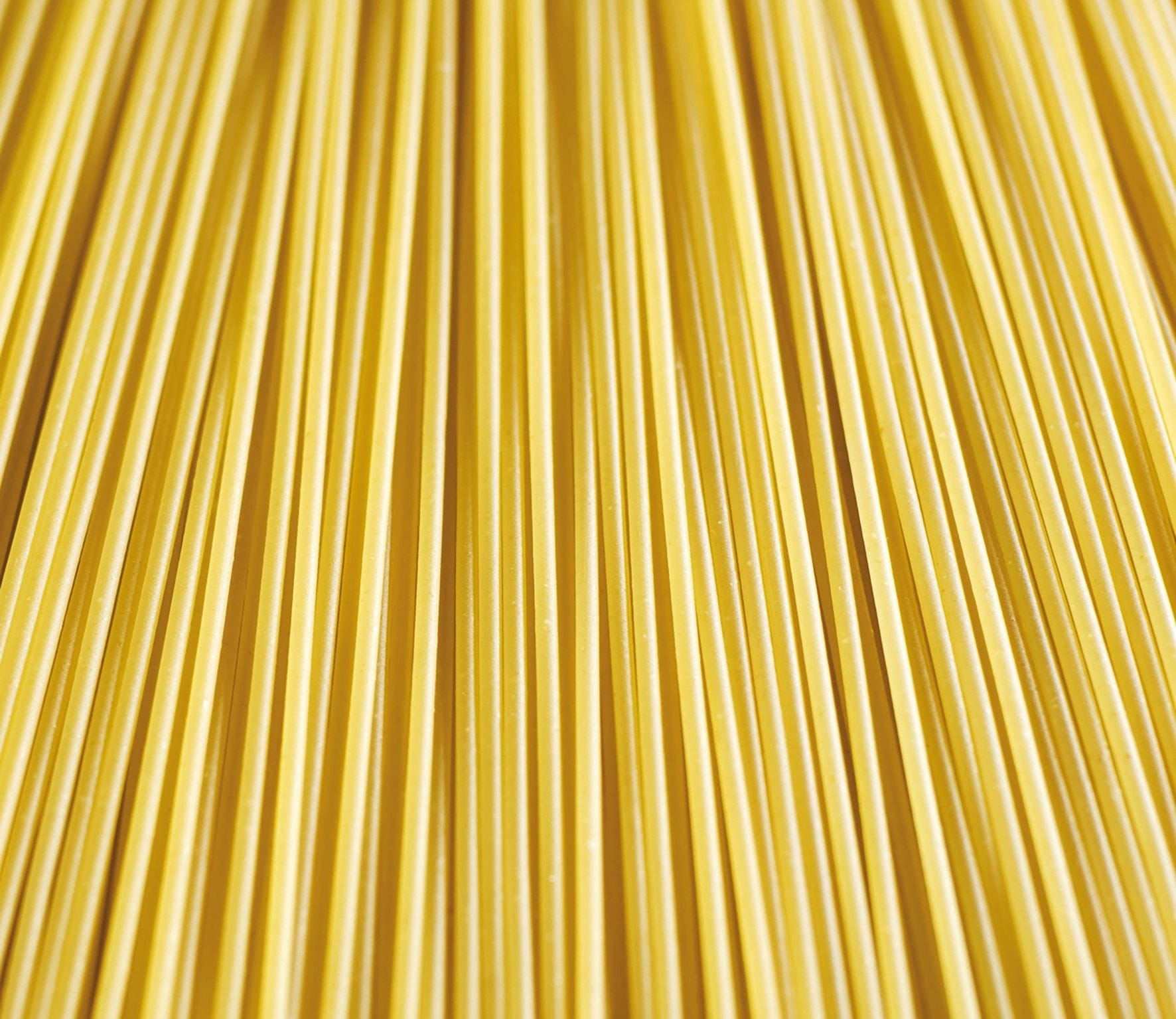 Zo eenvoudig is het: rol het pastadeeg dun uit zodat het werkvlak iets doorschijnt. Rol vervolgens met gelijkmatige druk over het deeg en scheid voorzichtig de pastastrengen.