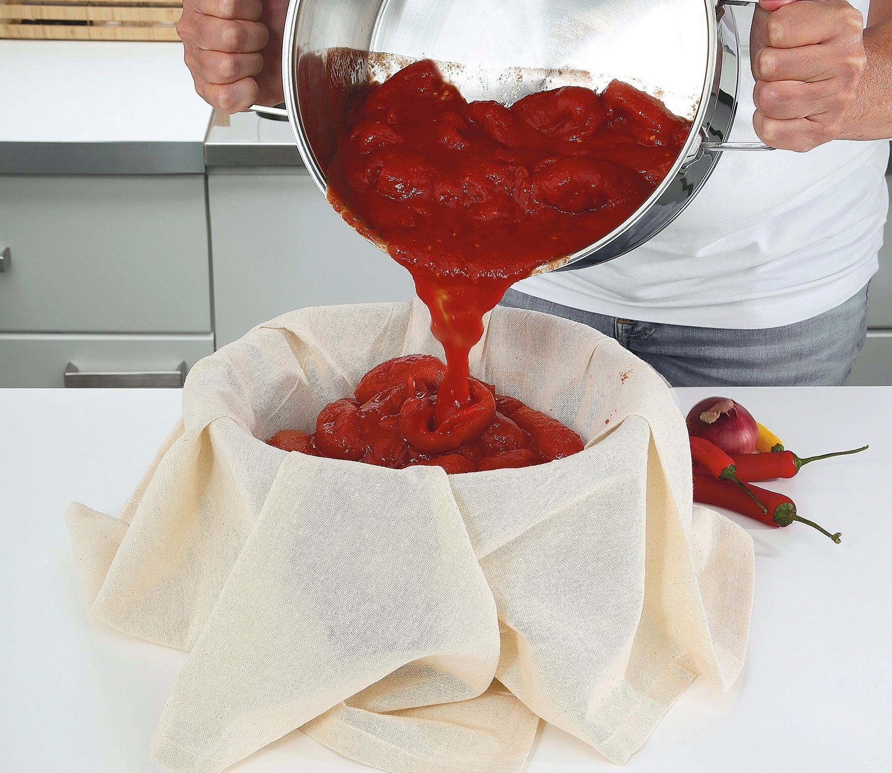 Deze veelzijdige zeefdoek van natuurlijk katoen is een must-have in elke keuken.