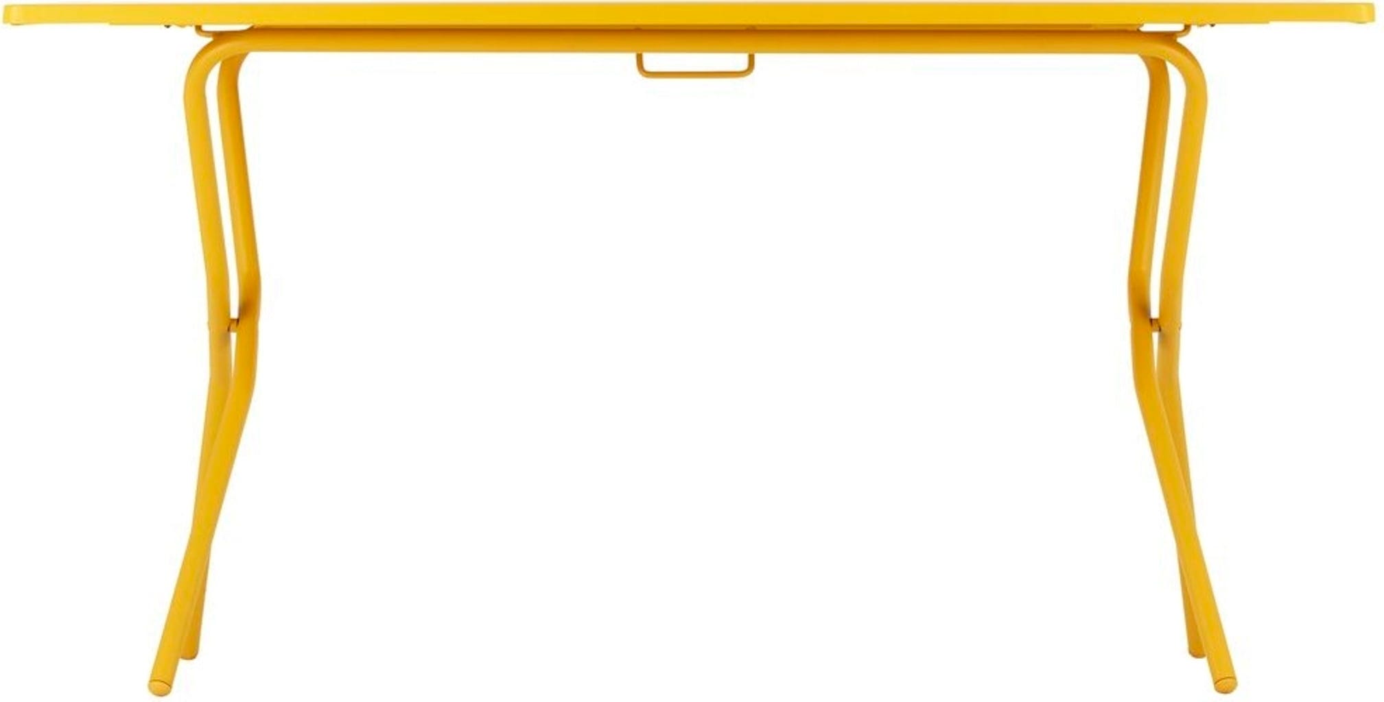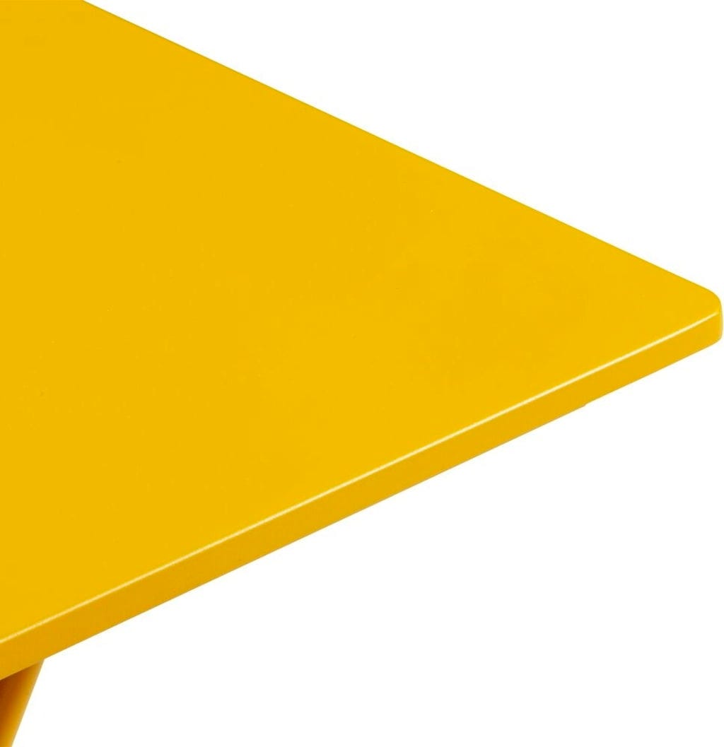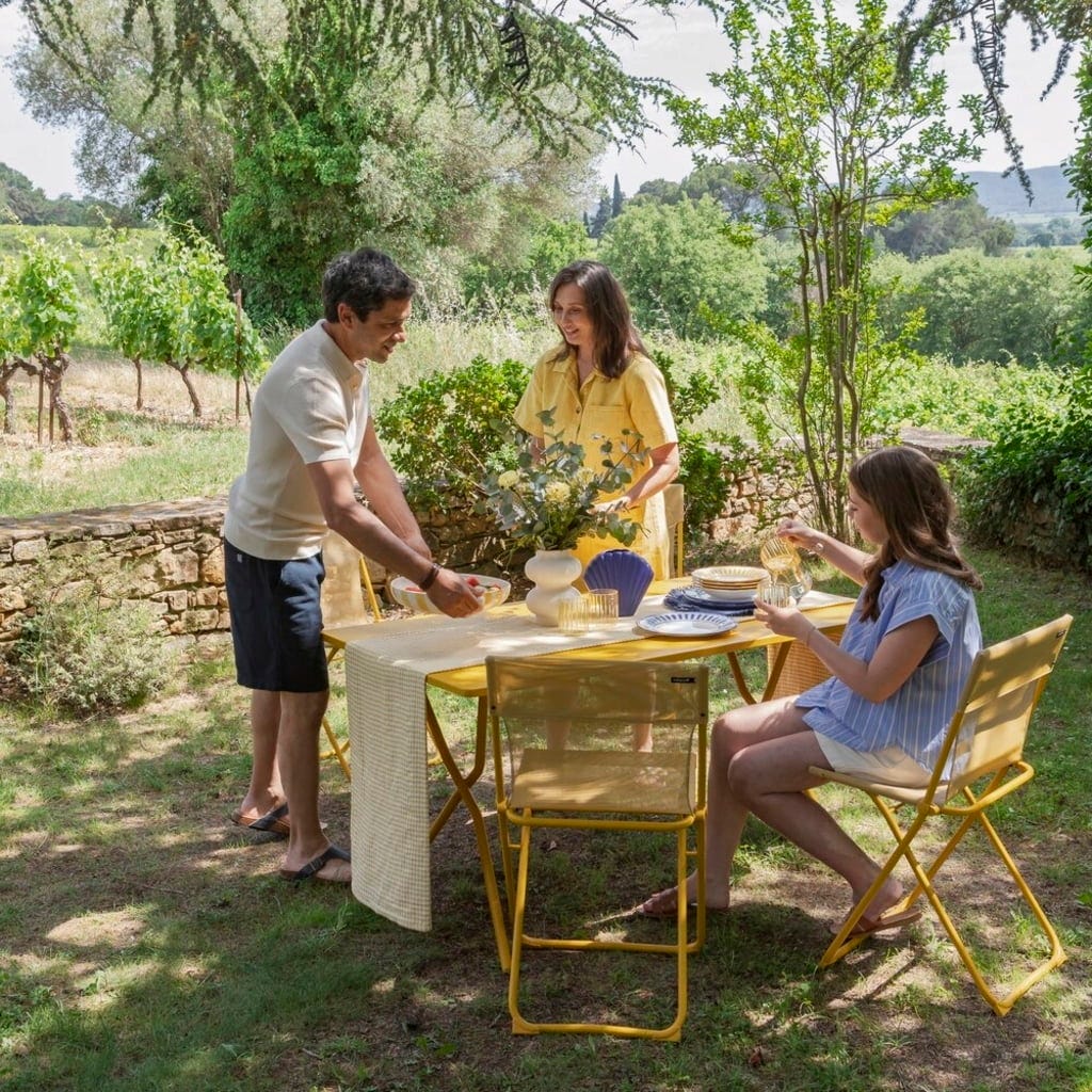 Het robuuste tafelblad van uv-bestendig, verzinkt staal trotseert weer en wind, terwijl de afgeronde hoeken zorgen voor een veilig gevoel wanneer het er eens wat levendiger aan toe gaat. Deze tafel is de perfecte combinatie van Franse lichtheid en technische finesse voor je outdoor-woonkamer!