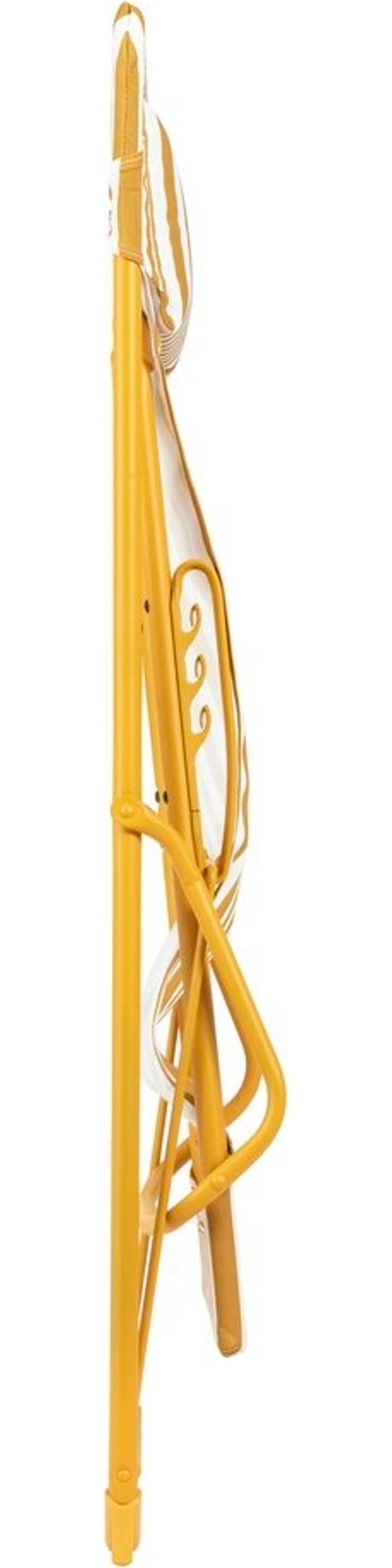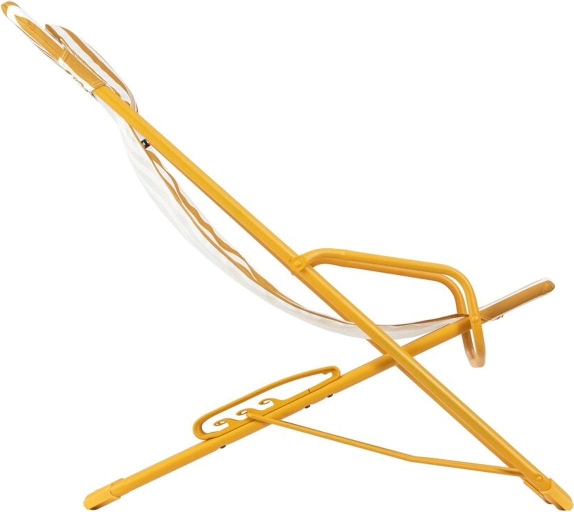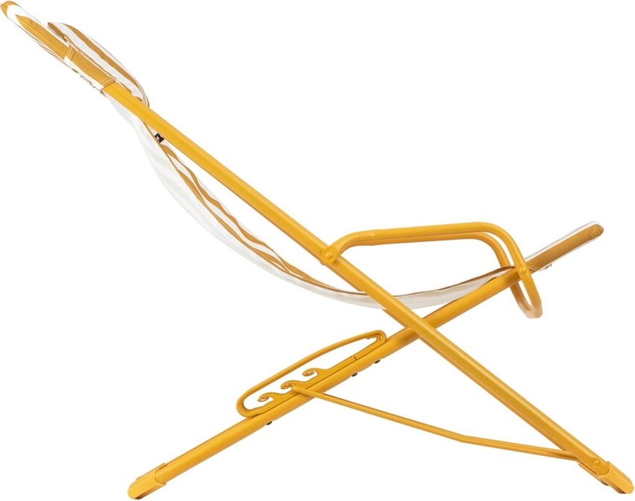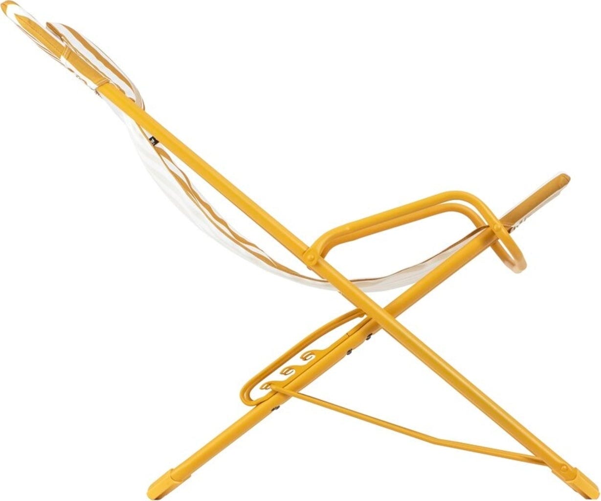 Of je nu rechtop wilt zitten in goed gezelschap, ontspannen wilt lezen of je helemaal wilt uitstrekken voor een kort dutje – via het veilige vergrendelsysteem met praktische geleidestang wissel je vloeiend tussen drie comfortstanden. De hoogwaardige Airlon-bekleding in maritieme look zorgt voor een stijlvol accent op je balkon of in de tuin. Bovendien is de stoel in een handomdraai plat in te klappen, waardoor hij zelfs in de kleinste nis een plekje vindt.