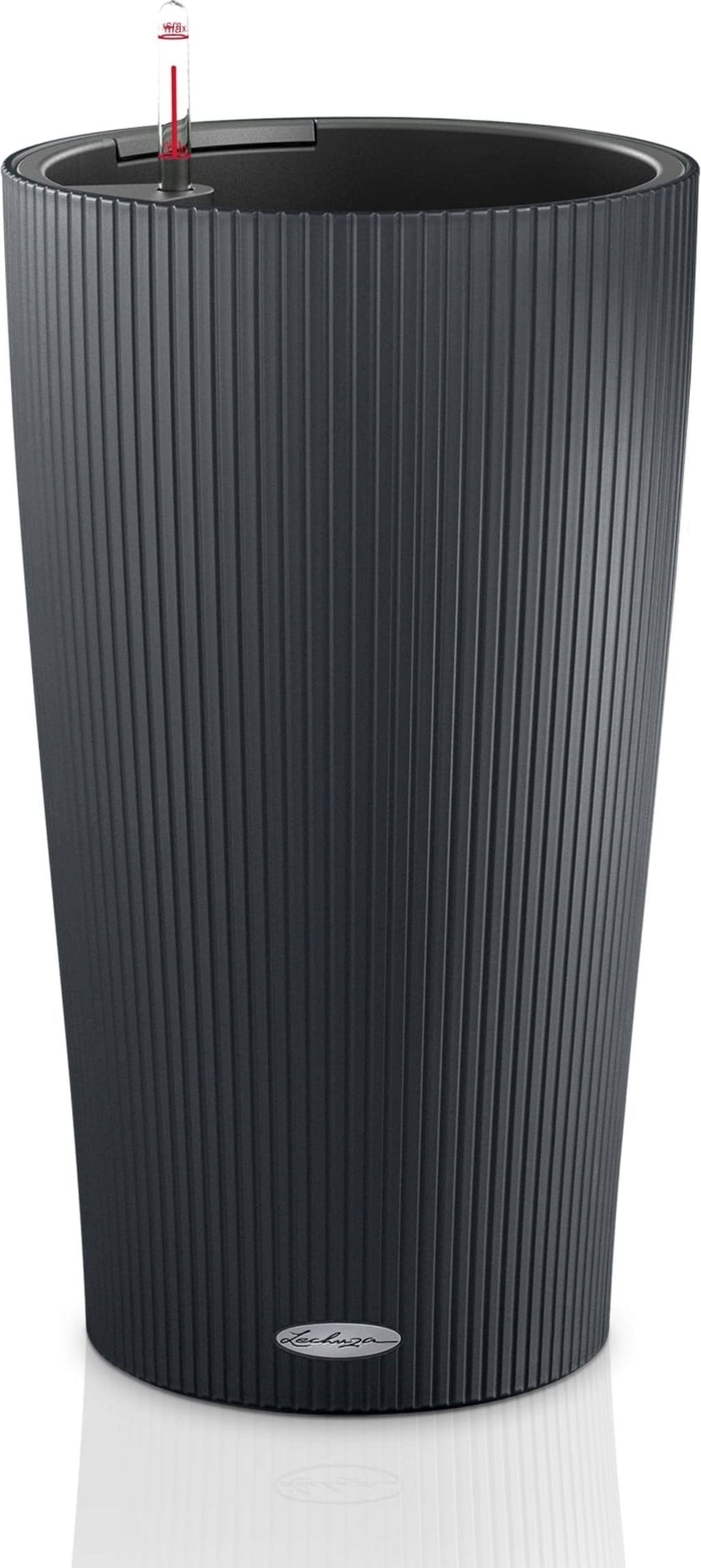 Cilindro wordt geleverd als een alles-in-één set met plantenbak, binnenpot, waterniveau-indicator en plantsubstraat.