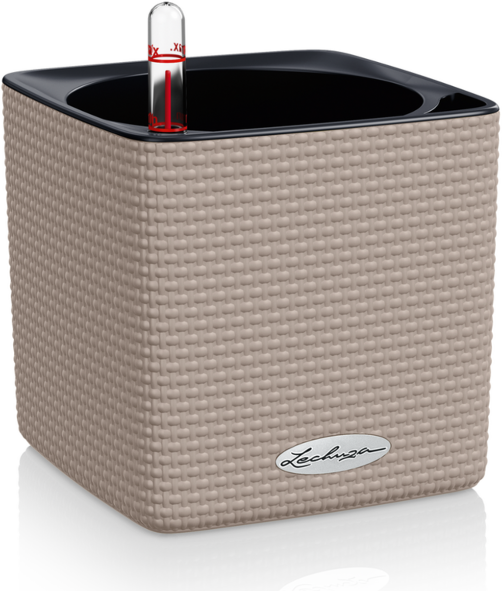 De mooie kleine Cube Color 14 kruidenpot van Lechuza heeft een irrigatiesysteem. Basilicum, bieslook of rozemarijn worden samen met de kweekpot geplaatst, herrpotten is niet meer nodig. Gewoon de meegeleverde stick in de bodem van de kruidenpot steken en water geven zoals gewoonlijk. De plant zal de nodige hoeveelheid water krijgen.