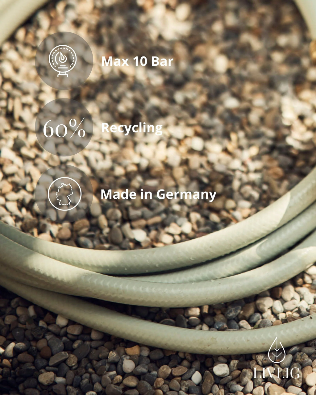 Is een tuinslang slechts een gewoon gebruiksartikel? Helemaal niet, zoals deze stijlvolle designtuinslang op indrukwekkende wijze laat zien. Dit unieke tuinaccessoire is een echte musthave voor iedereen wiens tuin een doordacht ontwerpconcept volgt en een weerspiegeling is van de eigen persoonlijkheid. Met zijn Scandinavische design in aangenaam zachte kleuren past hij harmonieus in stijlvol vormgegeven tuinen en bewijst dat zelfs een tuinslang esthetisch kan zijn.
