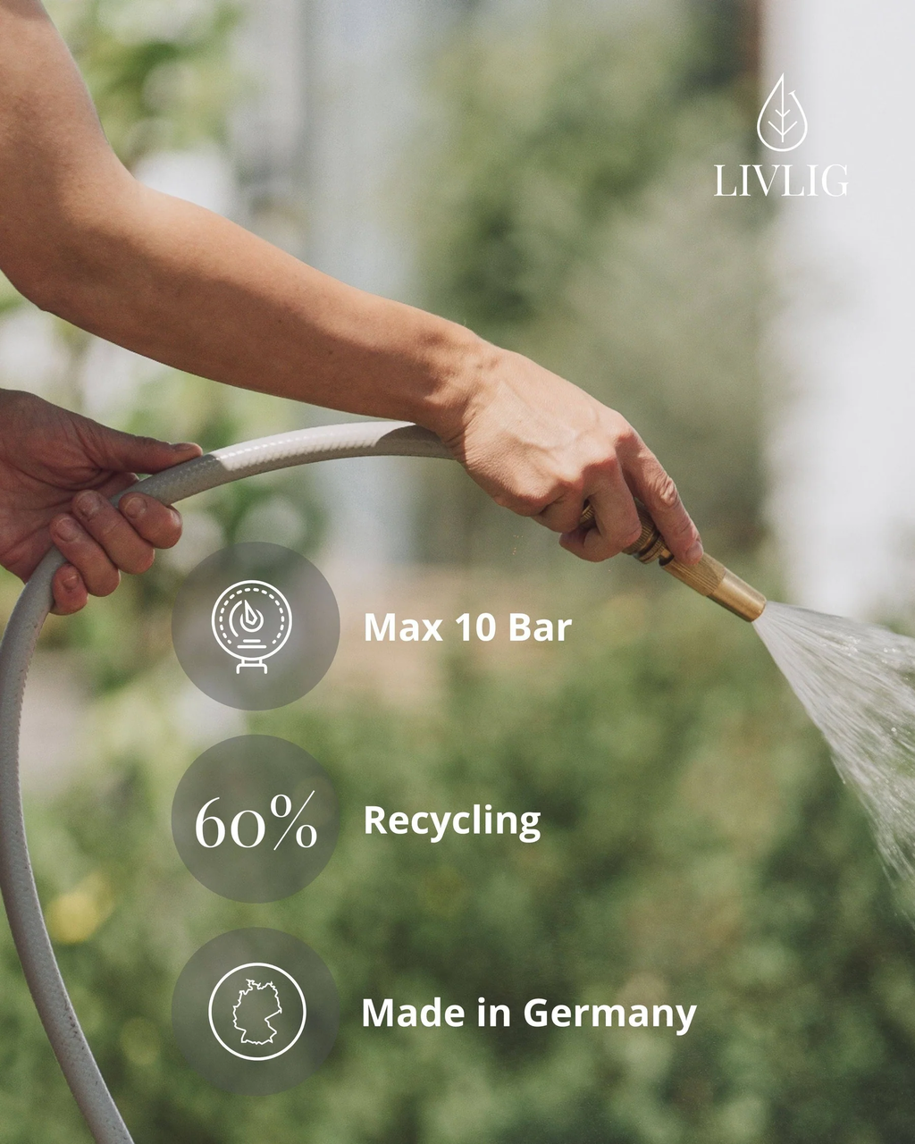 Is een tuinslang slechts een gewoon gebruiksartikel? Helemaal niet, zoals deze stijlvolle designtuinslang op indrukwekkende wijze laat zien. Dit unieke tuinaccessoire is een echte musthave voor iedereen wiens tuin een doordacht ontwerpconcept volgt en een weerspiegeling is van de eigen persoonlijkheid. Met zijn Scandinavische design in aangenaam zachte kleuren past hij harmonieus in stijlvolle tuinen en bewijst hij dat zelfs een tuinslang esthetisch kan zijn.