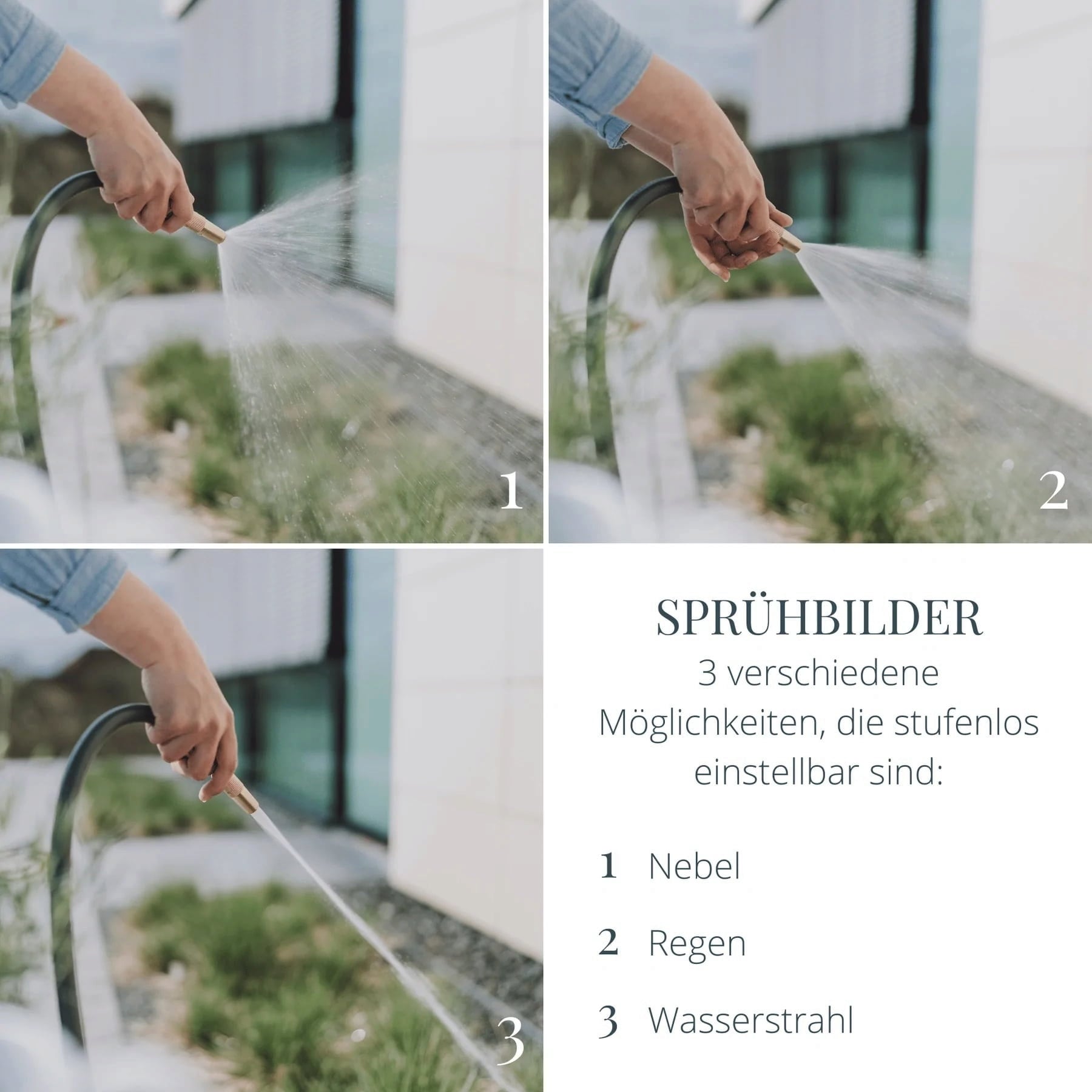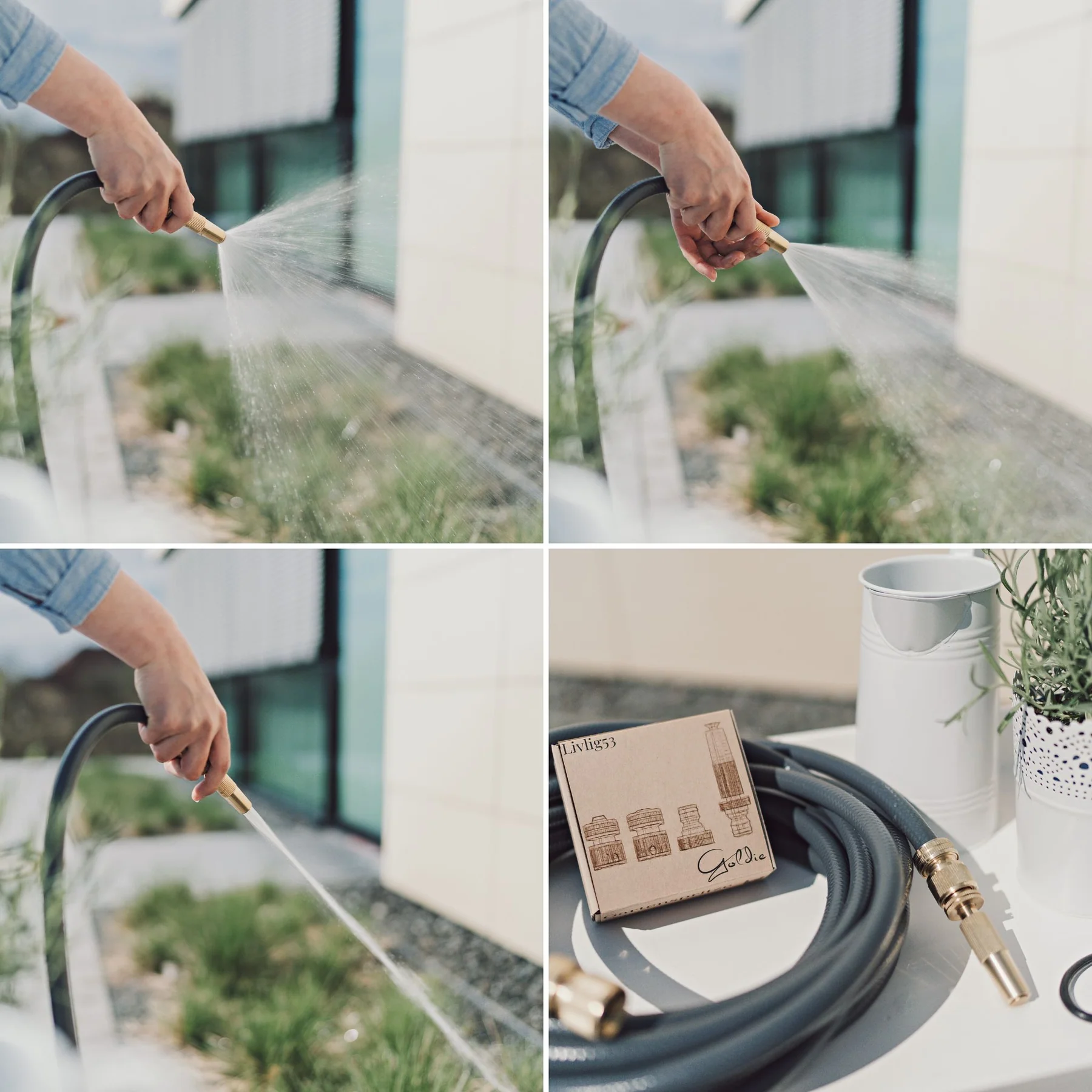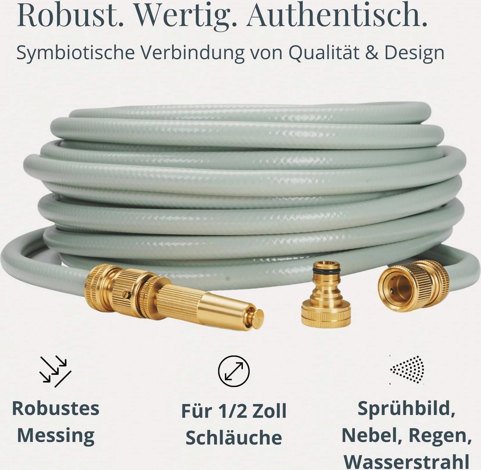 Elegant uiterlijk en uitstekende materiaal- en verwerkingskwaliteit - deze tuinsproeier is het perfecte accessoire voor de stijlvolle tuinslangen in Scandinavisch design en maakt deze op een unieke manier compleet. Dit stukje goud ziet er niet alleen geweldig uit, maar is ook extreem robuust en perfect om je planten water te geven met een straal water, zachte regen of nevel.