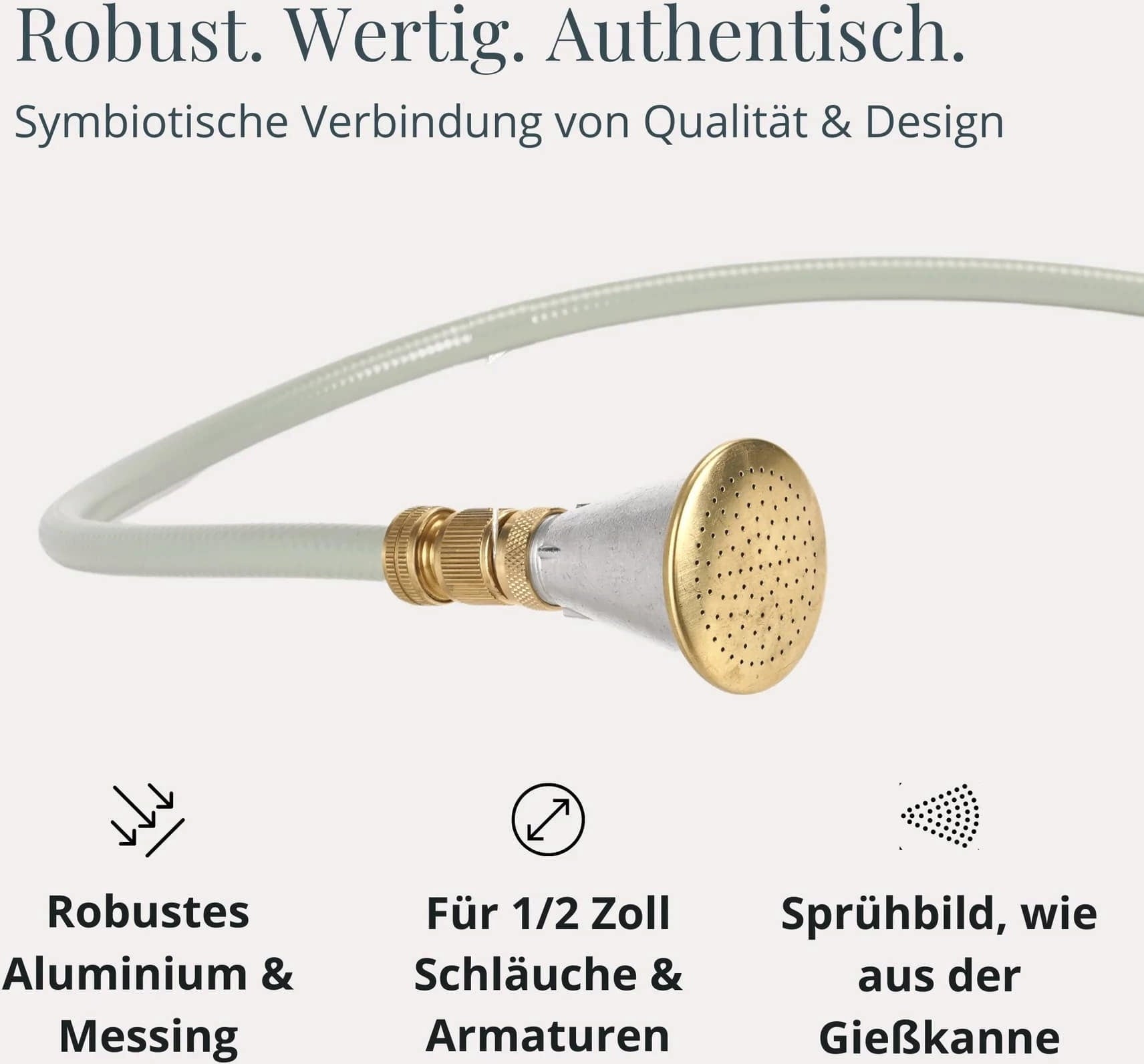 Deze bloemensproeikop kan hoogwaardig messing is de perfecte aanvulling op de Livlig53 design tuinslang en een must-have voor alle amateurtuiniers die geen concessies willen doen aan stijl als het om hun favoriete hobby gaat. Dankzij de vele individuele sproeikoppen biedt hij een authentiek gietergevoel in combinatie met een hoog gebruiksgemak en efficiënte besproeiingsprestaties.