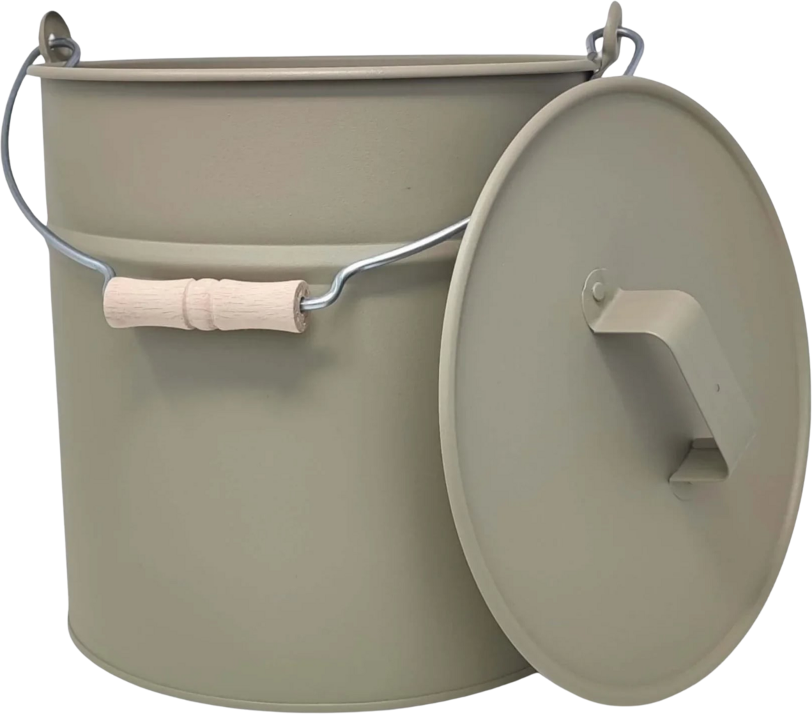 Livlig53 Metalen Emmer met Deksel, 12L, Mosgrijs