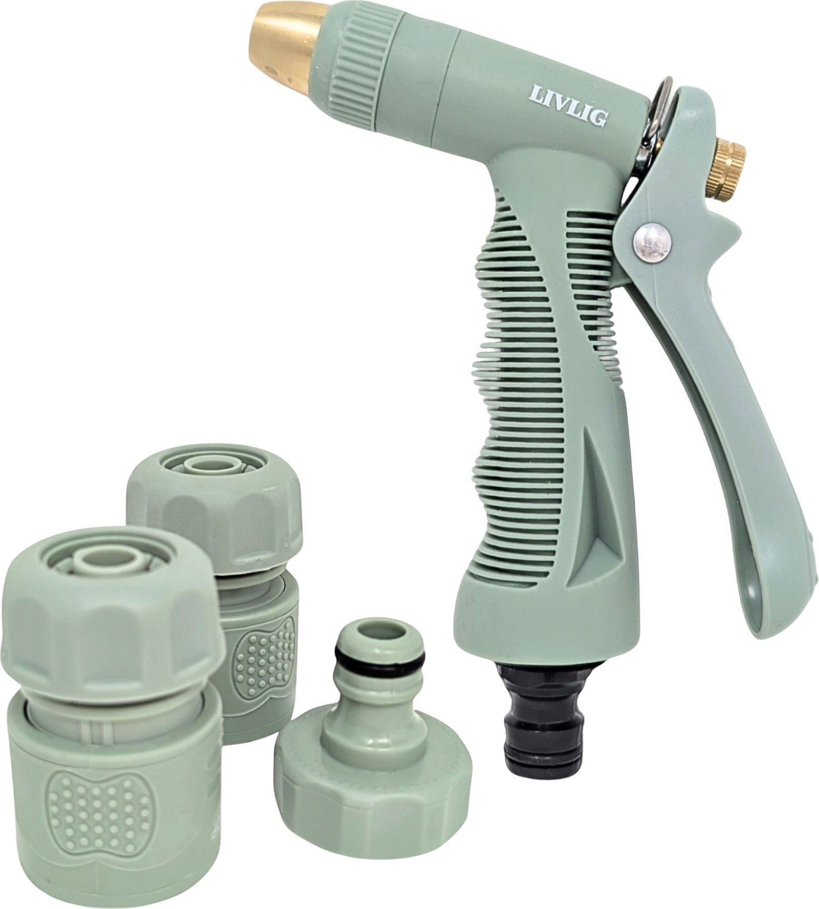 Deze praktische set past perfect bij de kleuren van de Livlig tuinslangen en bevat alles wat je nodig hebt om te beginnen met het besproeien van je tuin. Hij is niet alleen superpraktisch, maar ziet er ook geweldig uit.