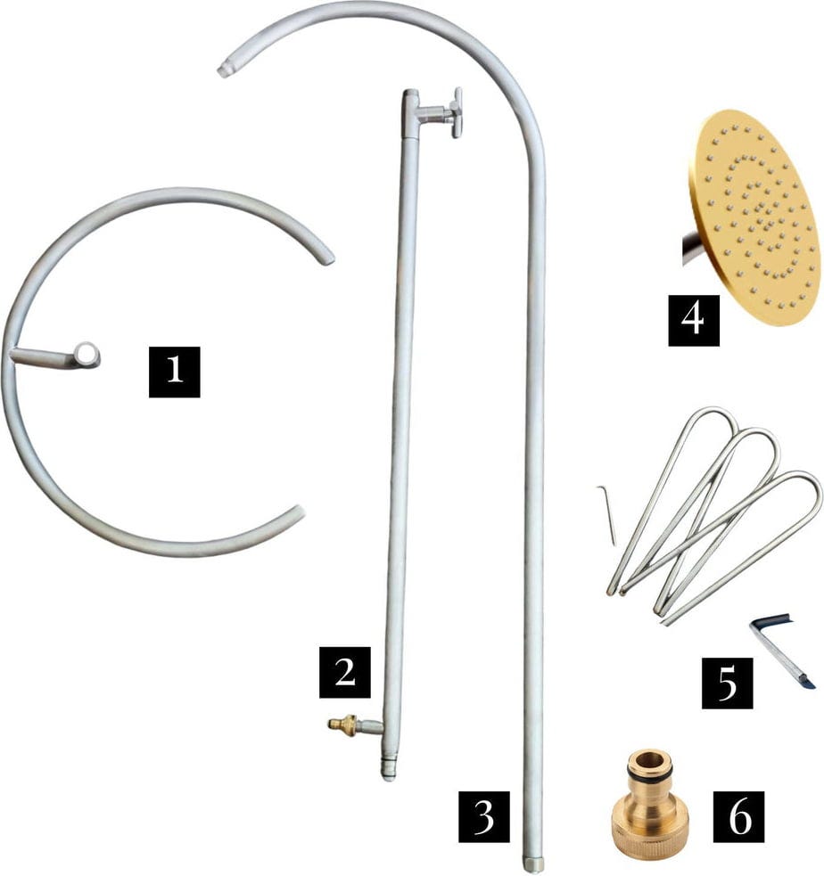 Deze koudwater tuindouche van geborsteld RVS is met zijn chique uitstraling een echte eyecatcher in de tuin. Hij is snel op te zetten en past perfect in de tuinsfeer van je huis. De douchekop is draaibaar. De tuindouche blijft te allen tijde veilig door middel van grondankers.