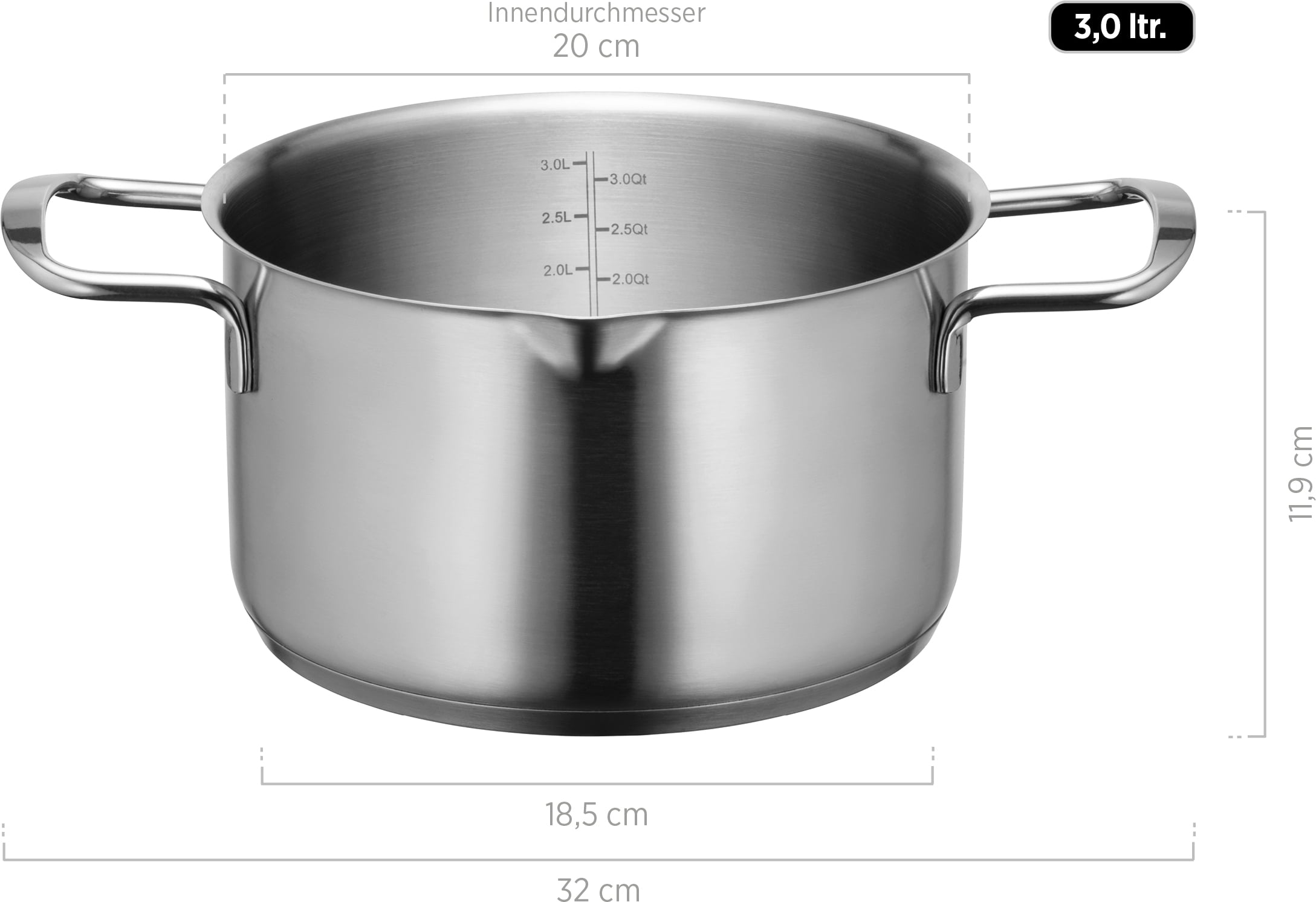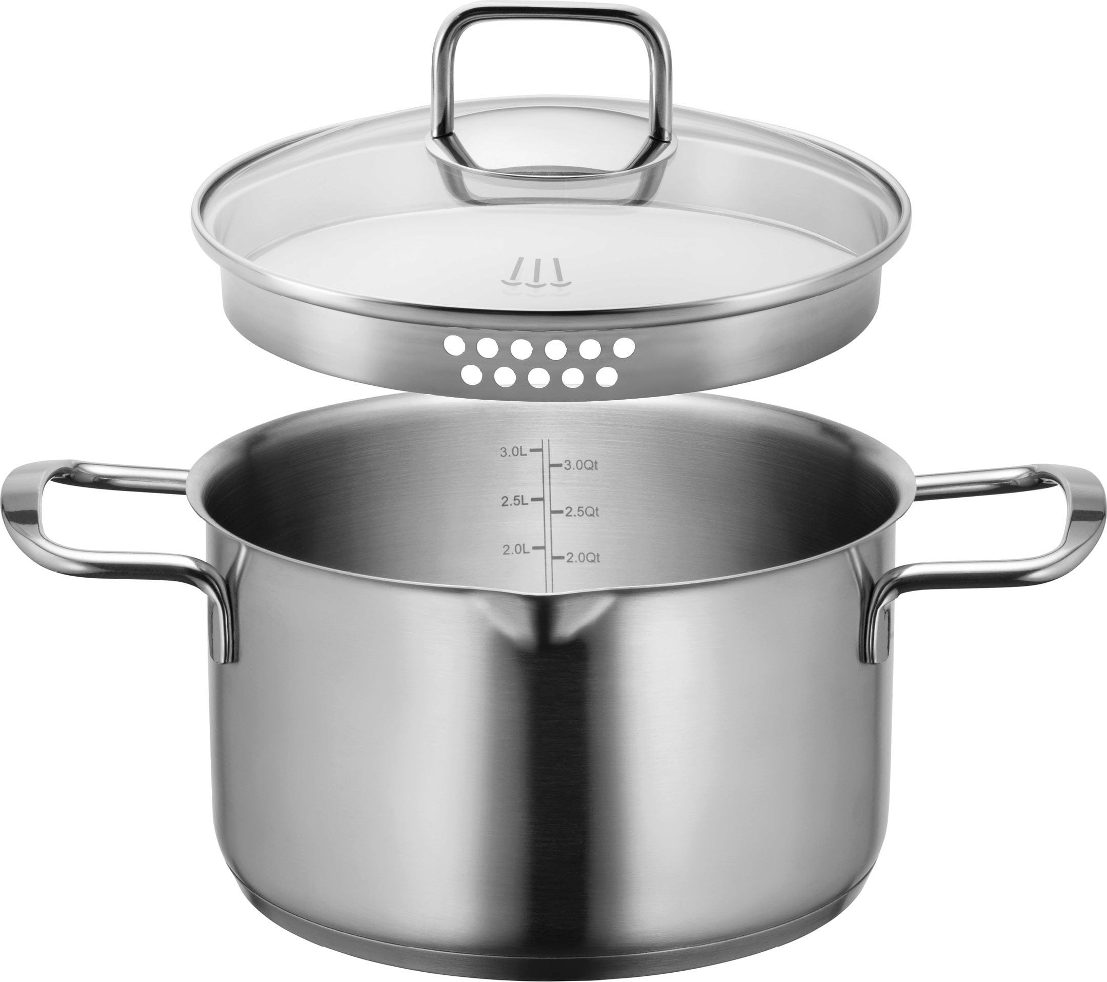Het robuuste glazen deksel met geïntegreerde zeeffunctie zorgt ervoor dat je het kookproces altijd in de gaten kunt houden. De pan heeft een inhoud van 3 liter en levert uitstekende prestaties op alle warmtebronnen, inclusief inductie. Dankzij het compacte formaat en het onderhoudsvriendelijke, vaatwasserbestendige oppervlak is dit de ideale hulp voor kleine porties, sauzen of bijgerechten in elke moderne keuken.