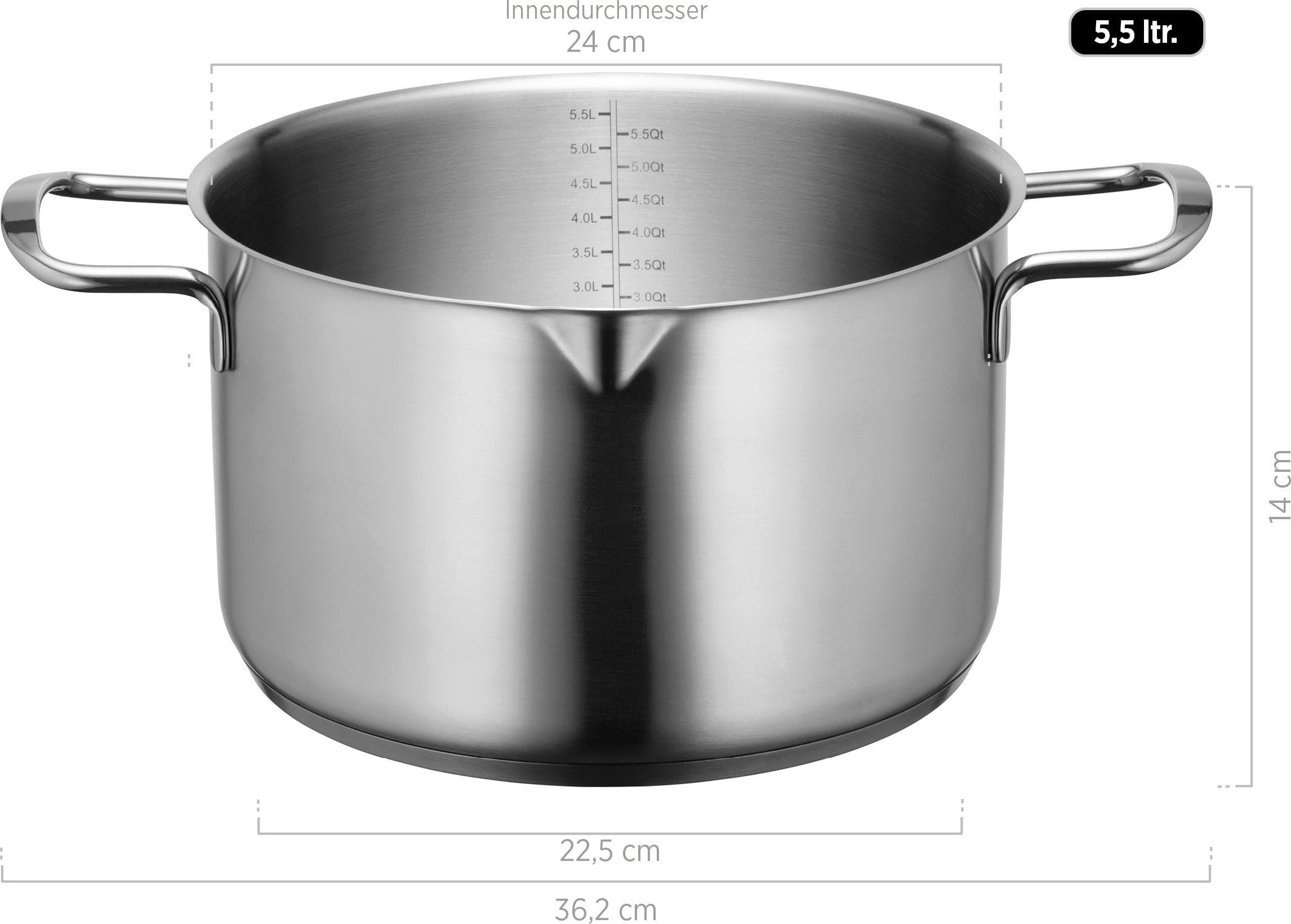 Het robuuste glazen deksel met geïntegreerde zeeffunctie zorgt ervoor dat je het kookproces altijd in de gaten kunt houden. De pan heeft een inhoud van 5,5 liter en levert uitstekende prestaties op alle warmtebronnen, inclusief inductie. Dankzij het compacte formaat en het onderhoudsvriendelijke, vaatwasserbestendige oppervlak is dit de ideale hulp voor kleine porties, sauzen of bijgerechten in elke moderne keuken.