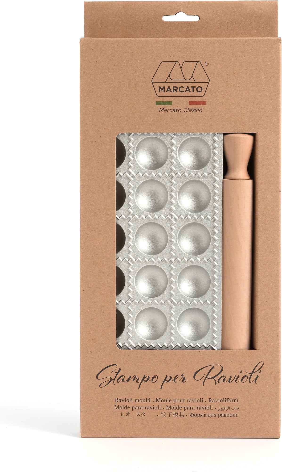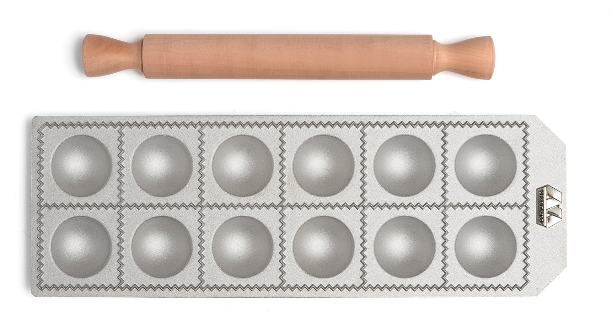 De prachtige bakvorm voor ravioli is verkrijgbaar in verschillende maten en er wordt ook een deegroller van massief hout meegeleverd, die een oppervlak heeft van natuurlijke was en lasergegraveerd is. Bovendien heeft de deegroller een ergonomische vorm waardoor het handvat stabiel en gemakkelijk te gebruiken is.