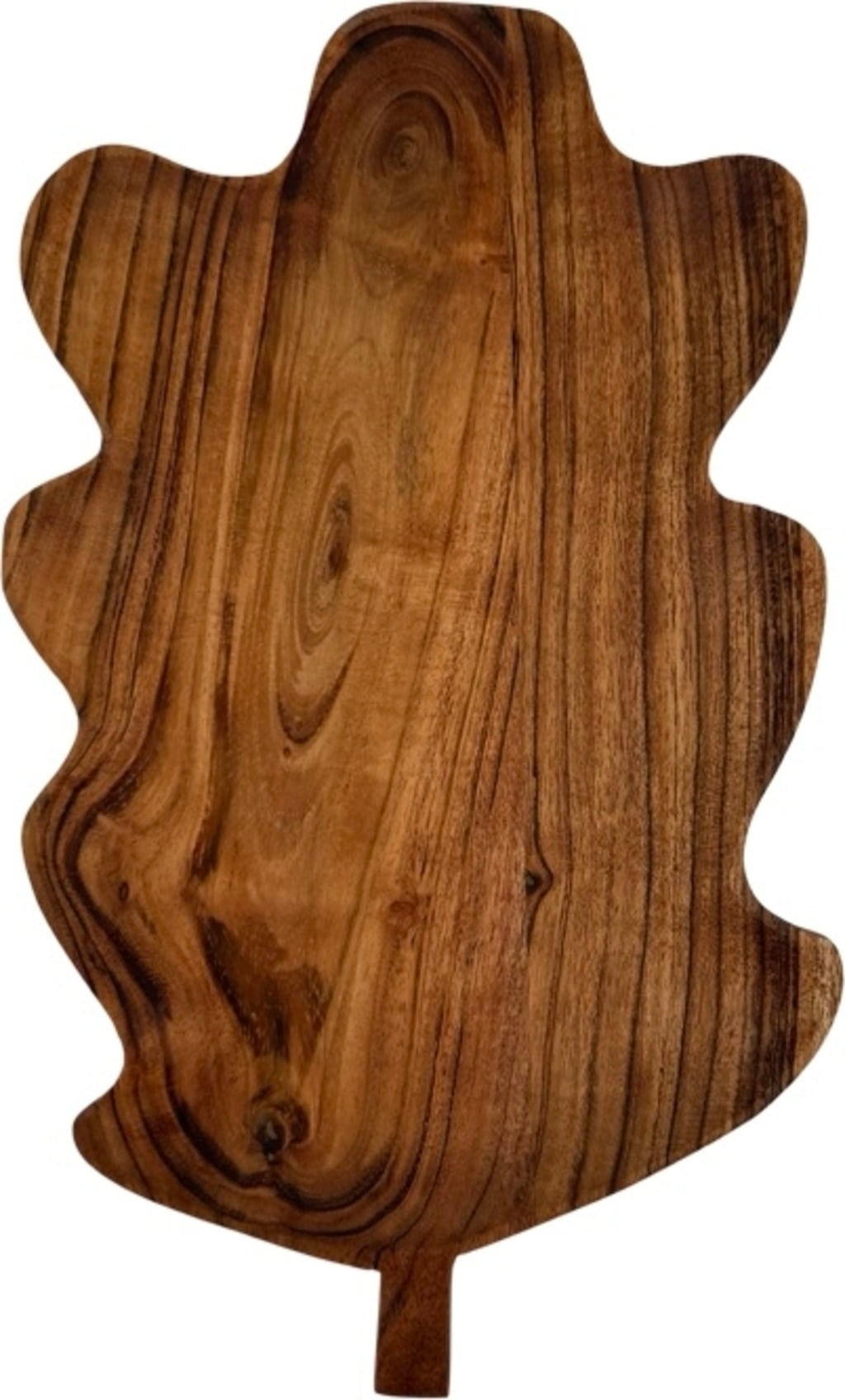 Serveer snacks, kaas of brood in stijl met de houten plank "Eikenblad". Gemaakt van hoogwaardig acaciahout en behandeld met voedselveilige olie, is elke plank robuust en duurzaam. Maak hem eenvoudig schoon met een vochtige doek en onderhoud hem regelmatig met olie zodat je er lang plezier van hebt. De vorm van het eikenblad maakt het een decoratief hoogtepunt op je tafel.