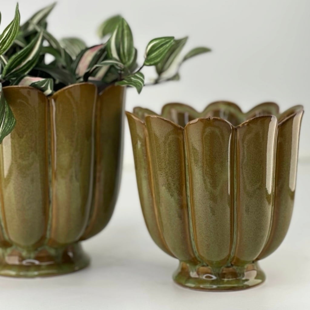 De "Petulia" plantenbak combineert moderne elegantie met uniek vakmanschap. Gemaakt van hoogwaardig steengoed en afgewerkt met een reactief glazuur, heeft elke pot zijn eigen kleurnuance - een echt uniek stuk. De zacht glanzende, gevouwen vorm geeft planten een stijlvol podium en past harmonieus in verschillende woonstijlen.