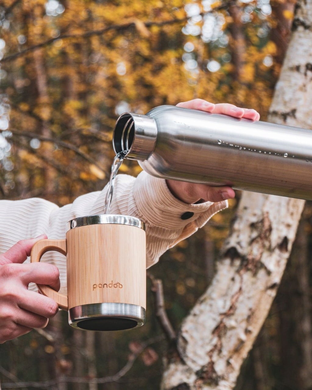 Of je nu thuis bent of op de camping - deze mok maakt niet alleen indruk met zijn natuurlijke, chique ontwerp, maar ook met zijn indrukwekkende eigenschappen! Hij is dubbelwandig, wat betekent dat hij je drankjes langer warm houdt dan conventionele mokken, maar ook je vingers beschermt tegen hete dranken. De mok is 100% plasticvrij en is dankzij het lage gewicht ook ideaal voor picknicks en andere uitstapjes!