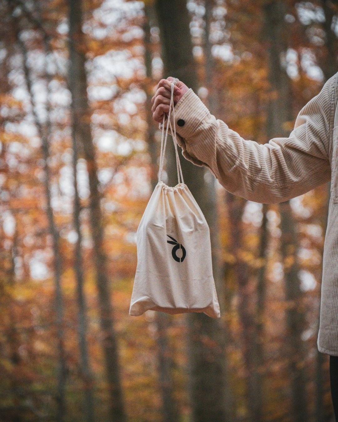 Materiaal: roestvrijstaal (bak), siliconen (afdichting), biologisch katoen (zak)