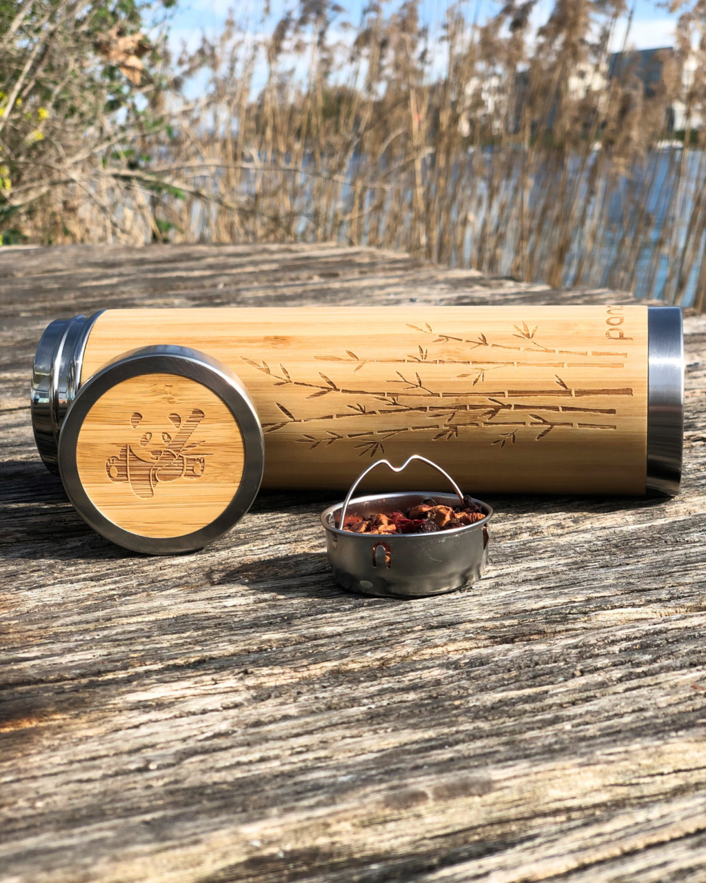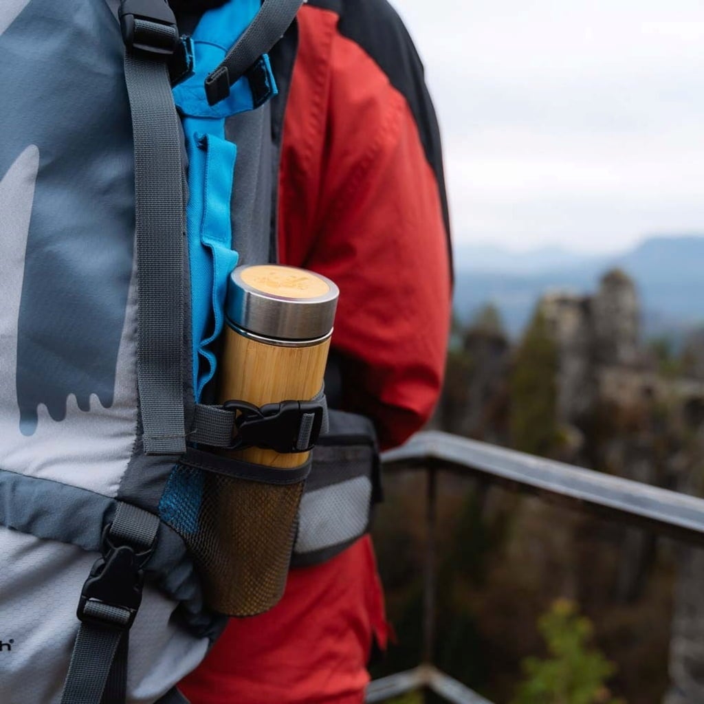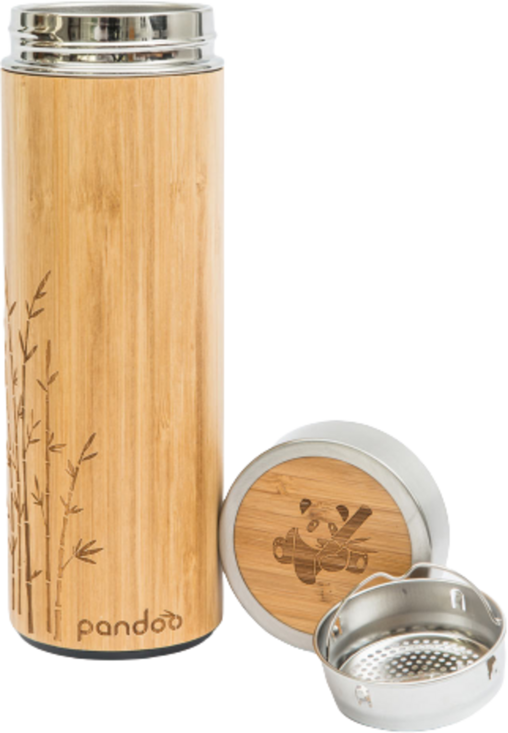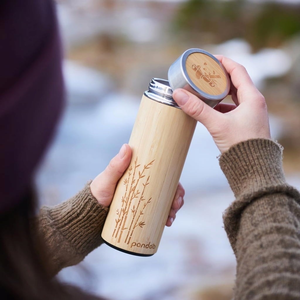 Pandoo Thermosfles van Bamboe en Roestvrij Staal, 360 ml