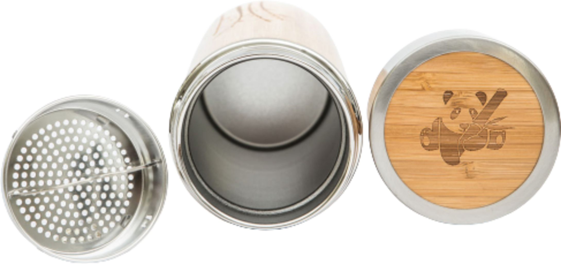 Materiaal: bamboe, roestvrij staal, BPA-vrij plastic (deksel, pakking en bodem)