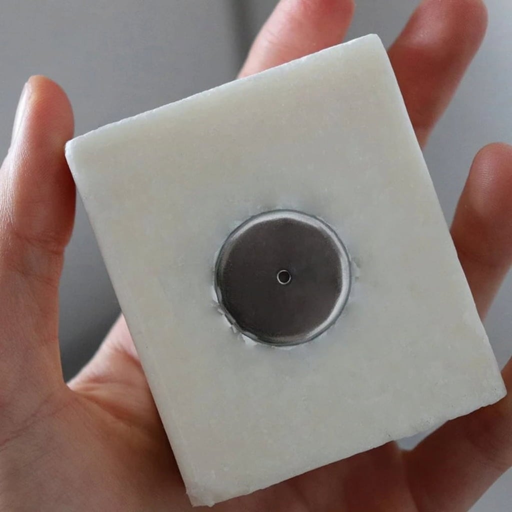 - Druk de metalen plaat in je blok zeep.