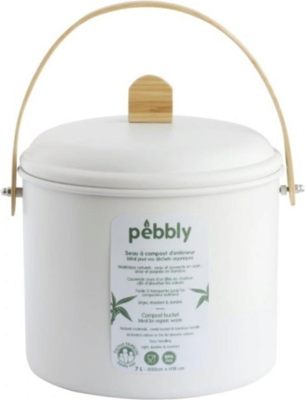 Pebbly Compostvat 7 Liter van Metaal en Bamboe, Cream