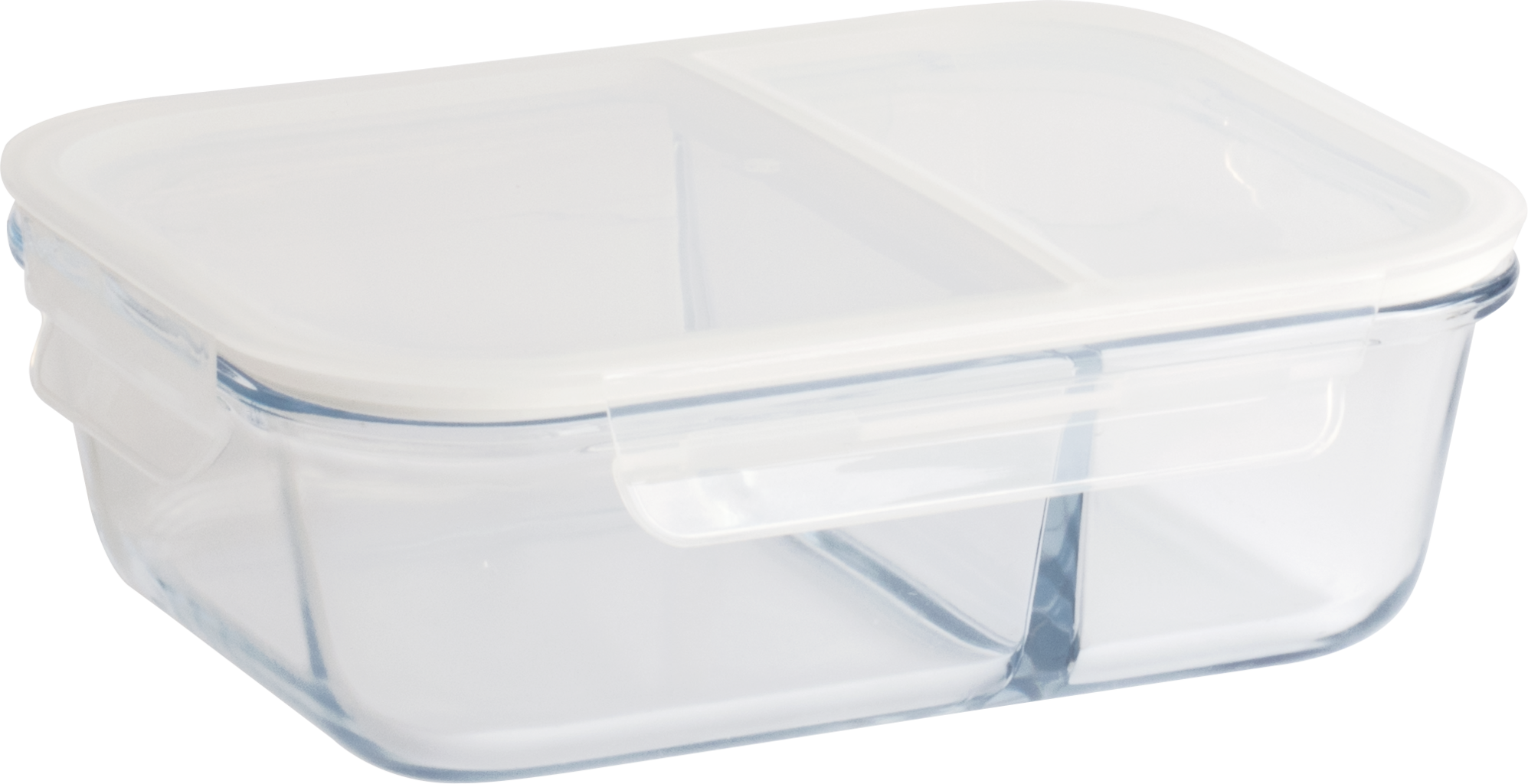 Dit vershoudbakje bestaat uit twee vaste compartimenten waardoor je de verschillende componenten van je eten gemakkelijk van elkaar kunt scheiden of hoofd- en nagerecht in één bak kunt meenmen - ideaal voor op kantoor of heerlijke picknicks!