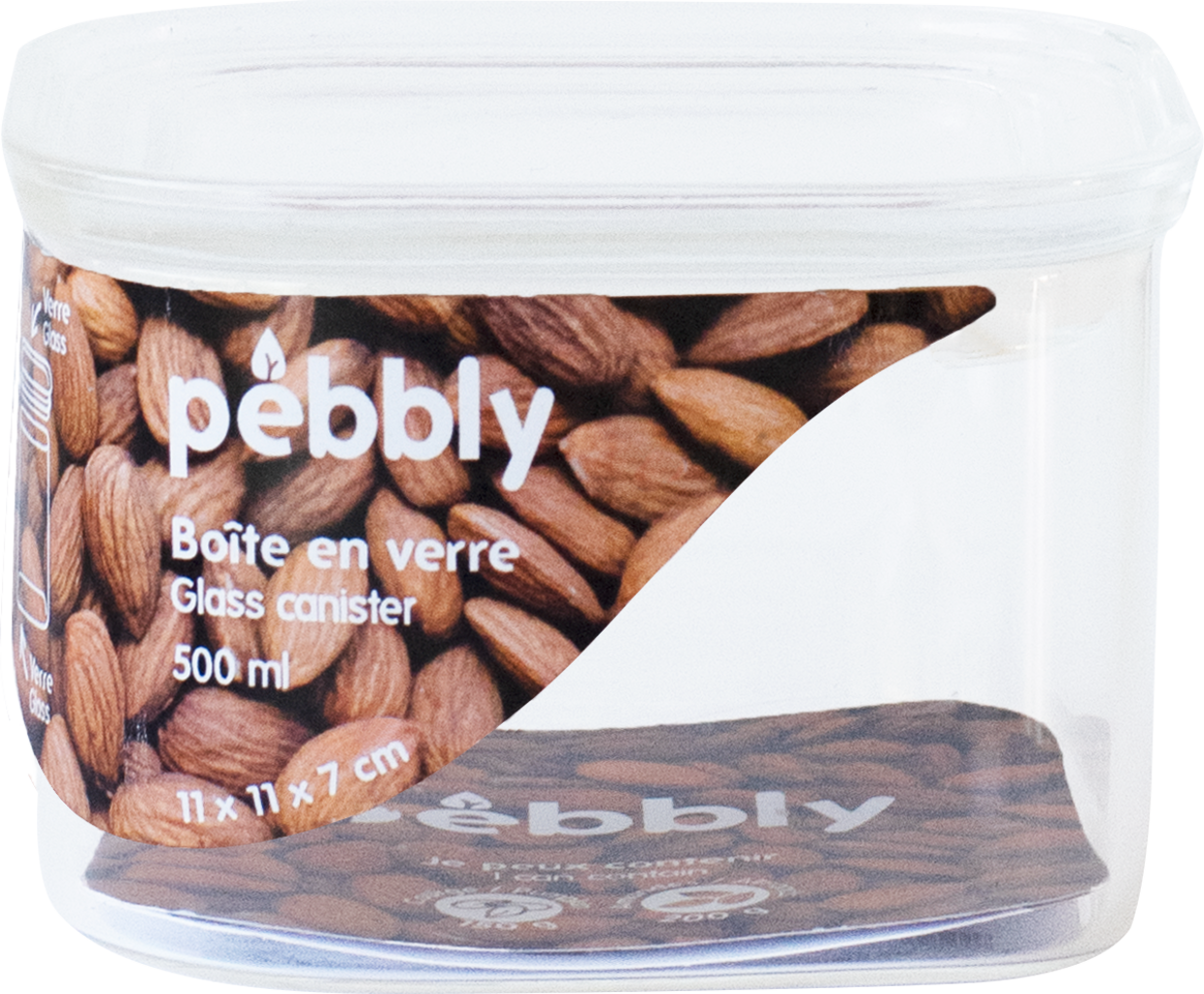 Pebbly Vierkant Voorraadbakje met Glazen Deksel, 500 ml