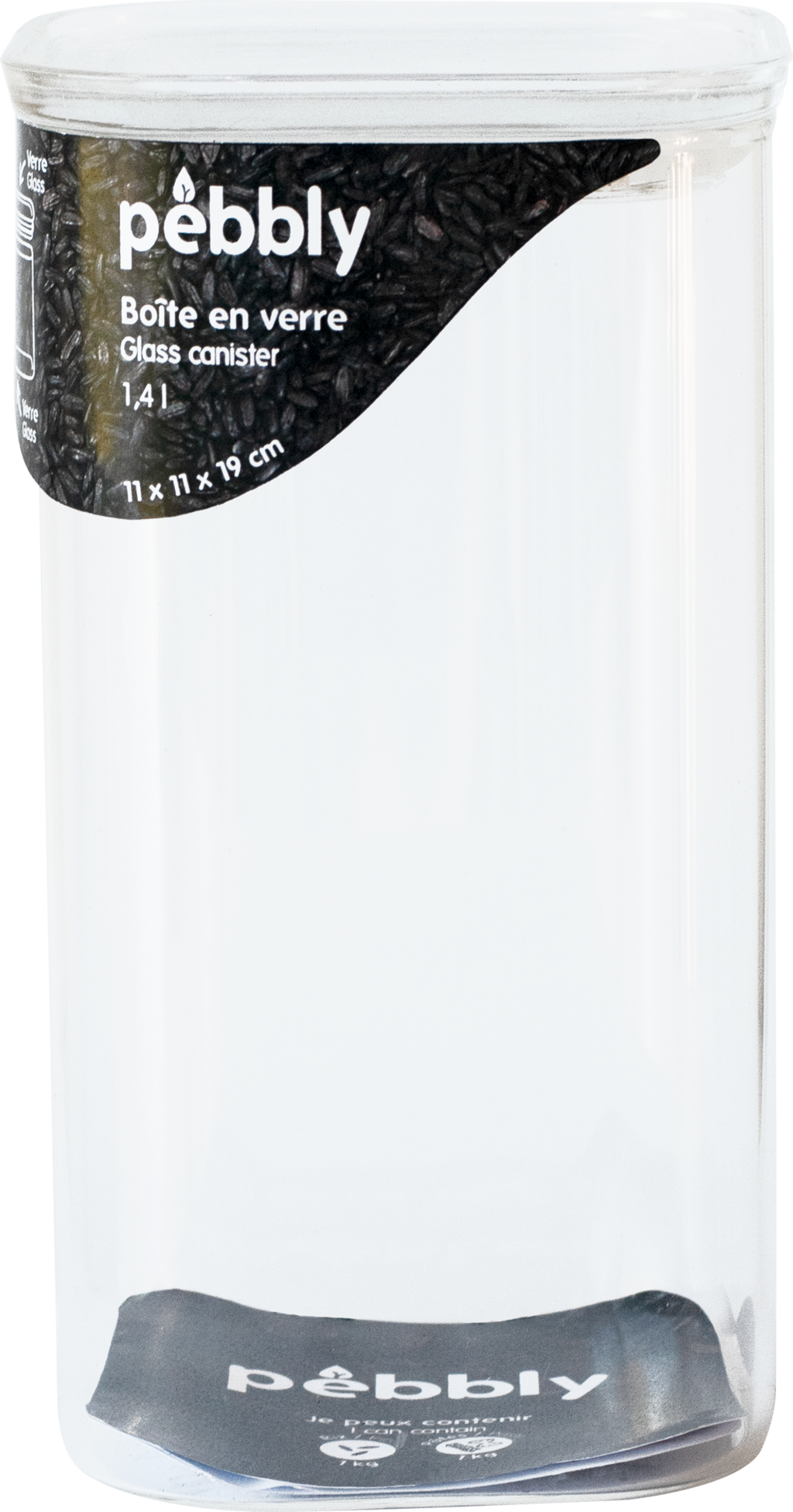 Pebbly Vierkant Voorraadbakje met Glazen Deksel, 1400 ml