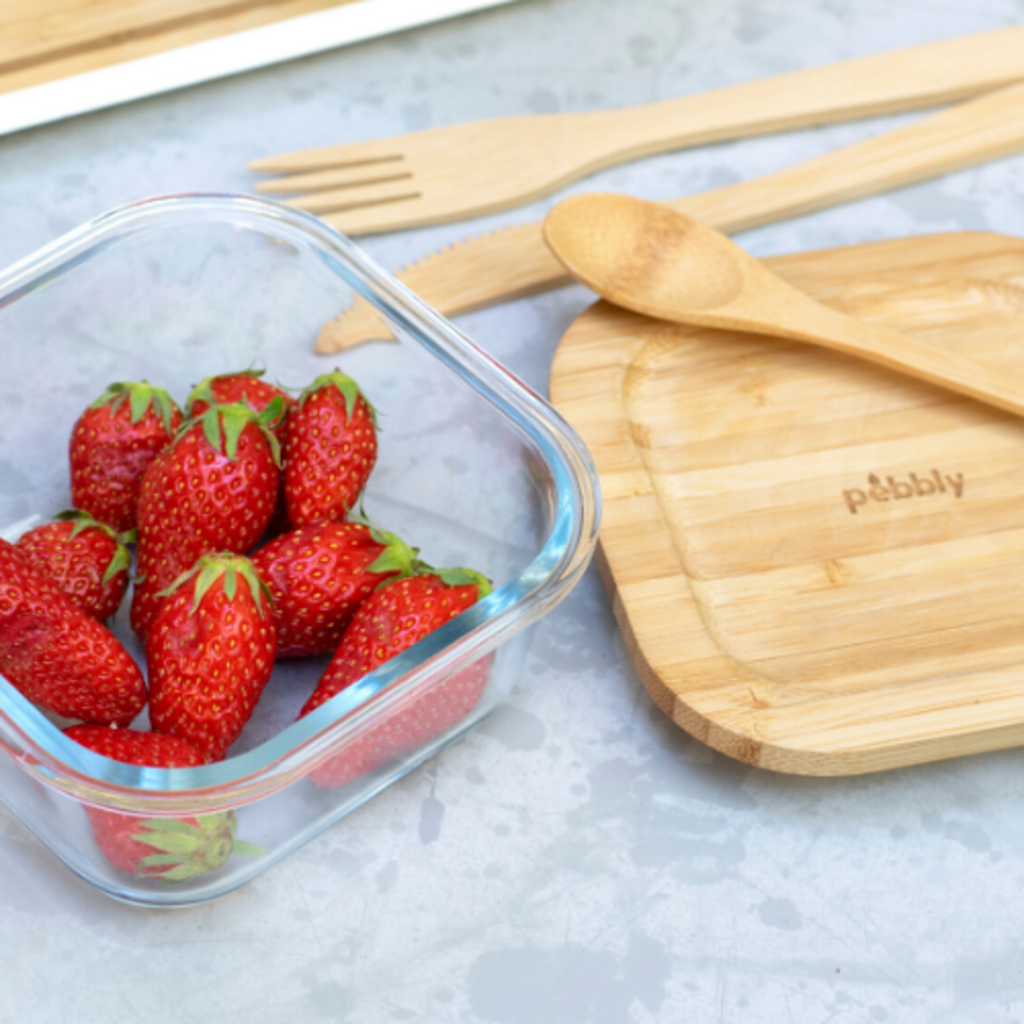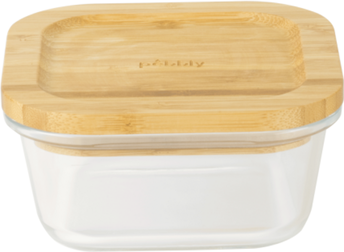 Pebbly Vierkante Glazen Voorraaddoos met Bamboe Deksel, 0,52 L