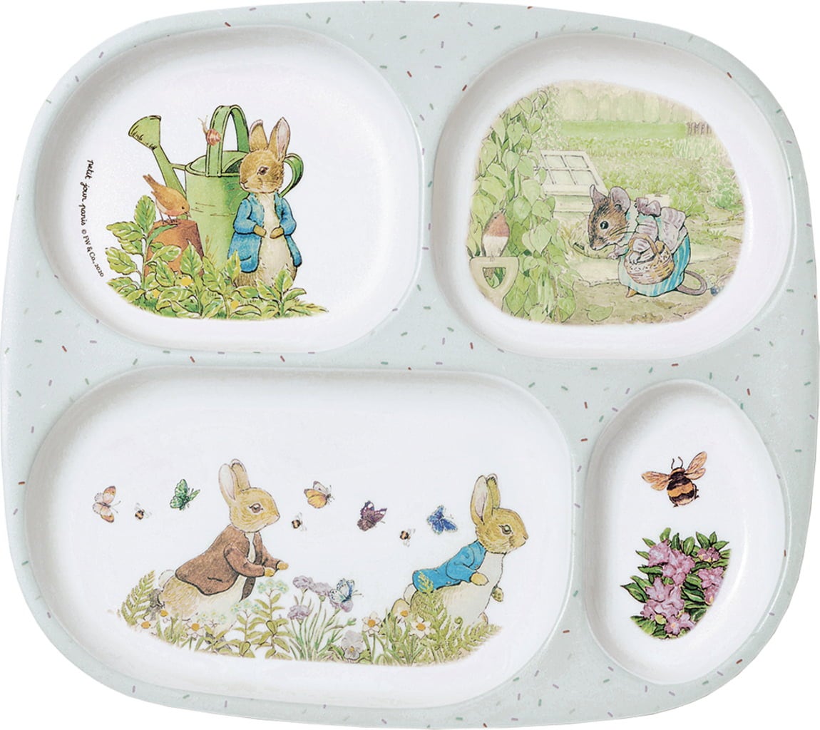 Pap voor de muis, vlees en groenten voor het konijn, heerlijk fruit voor de bij - elk gerecht heeft hier zijn plaats om de kleintjes een uitgebalanceerd minibuffet te bieden. Vaatwasmachinebestendig en versierd met de schattige figuurtjes uit de wereld van Peter Konijn.